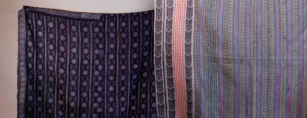 Vintage Kantha Quilt - Ikat | Checks