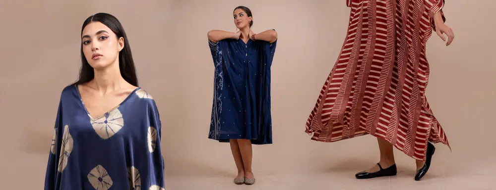 Satin Silk Gol Bandhni Kaftan - Indigo