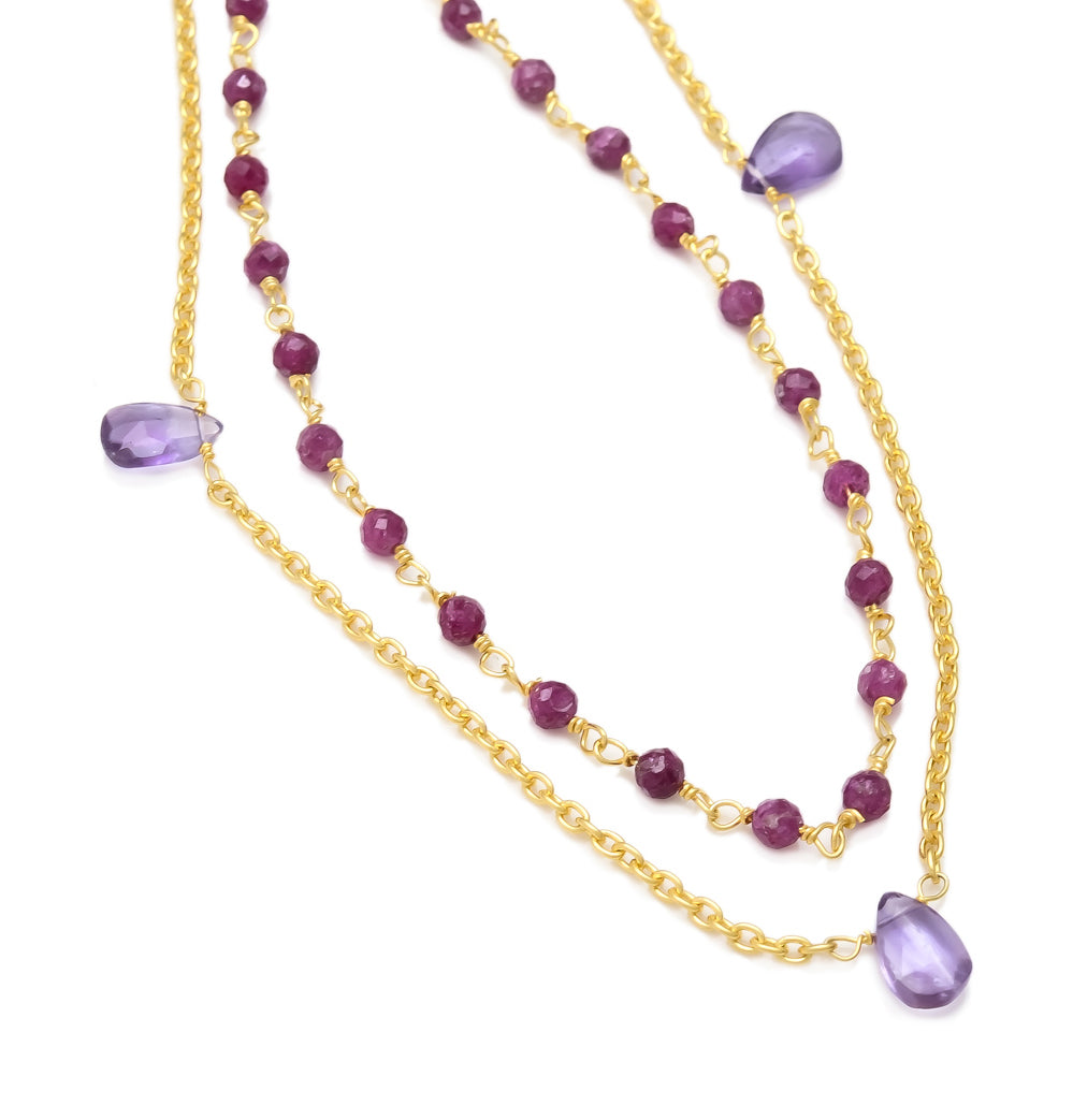Amethyst | Ruby Short Necklace