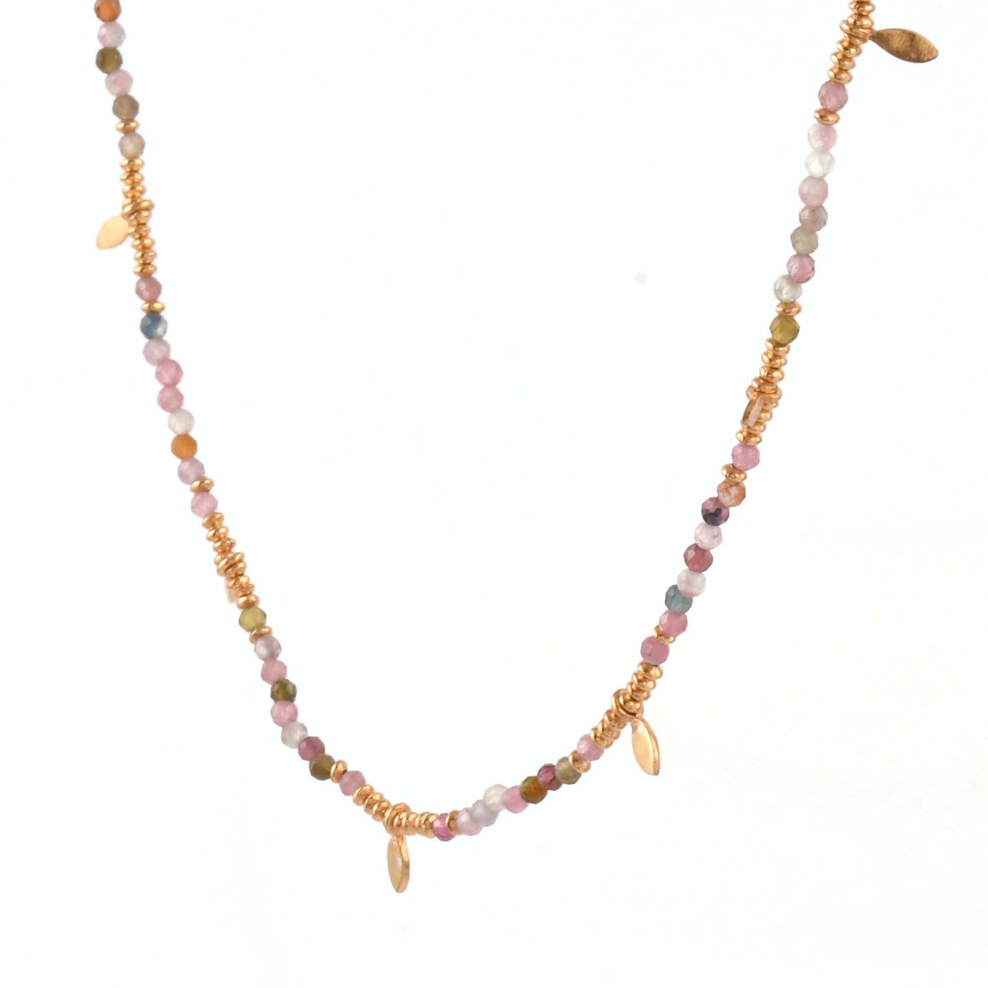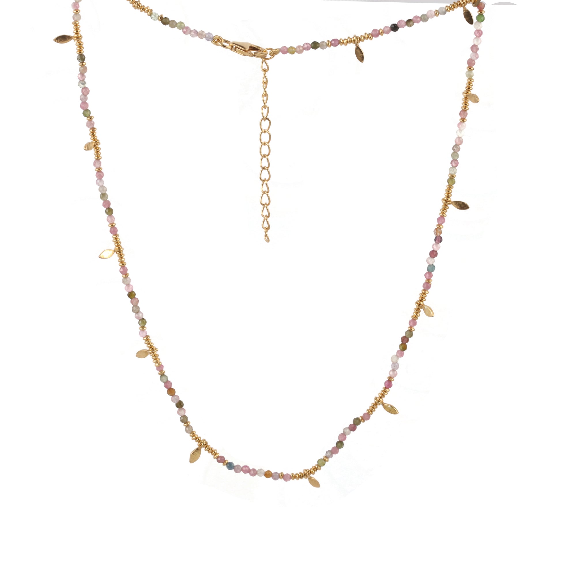 Dainty beads strung together with gold plated tiny silver leaves - add your pendants or charms or just wear it solo - an ideal day to day jewelry piece