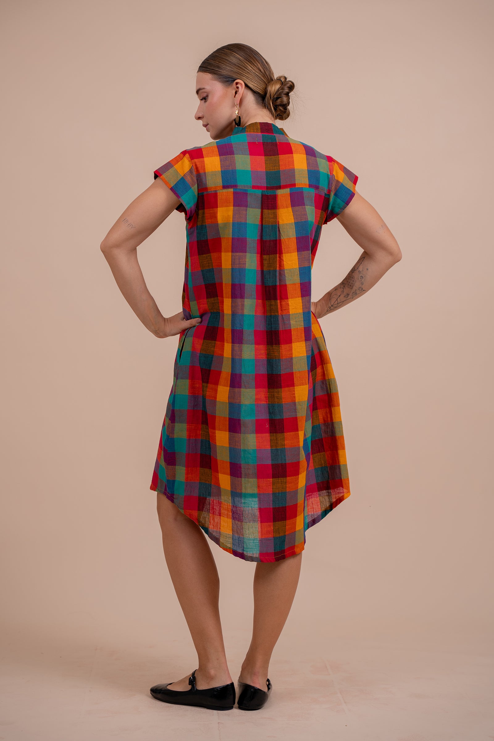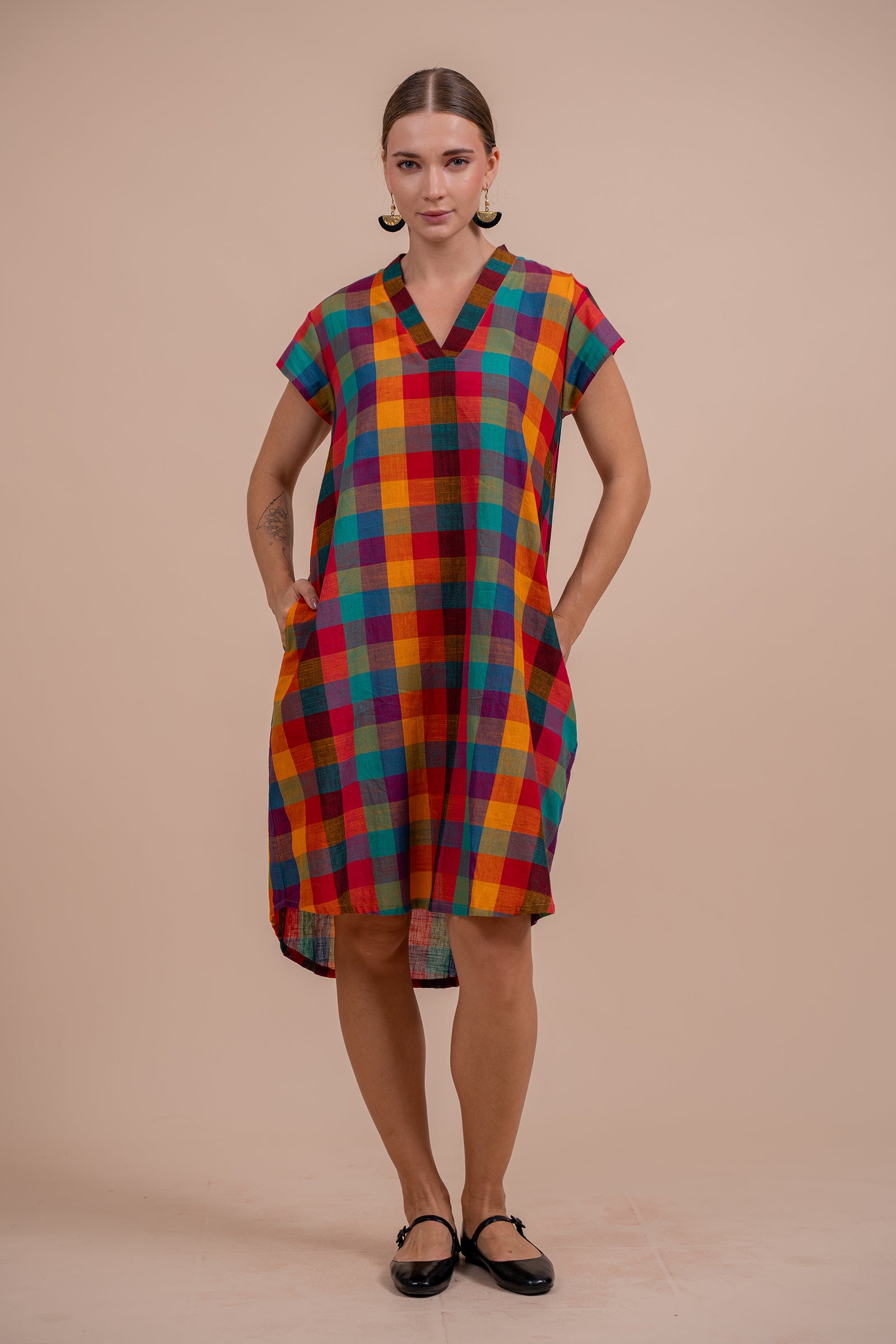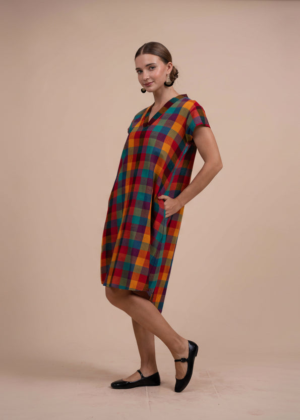 Madras Checks Asymmetrical Dress