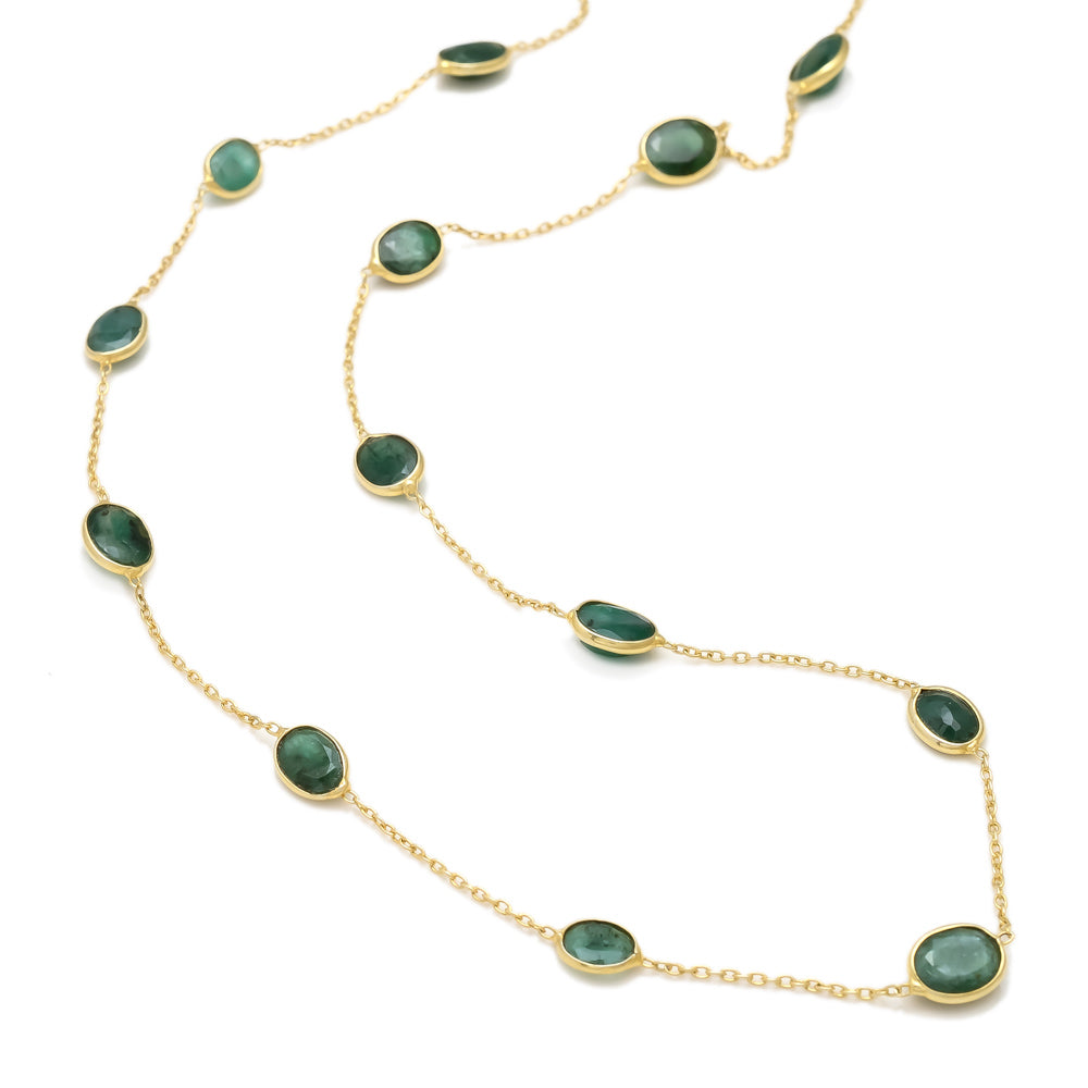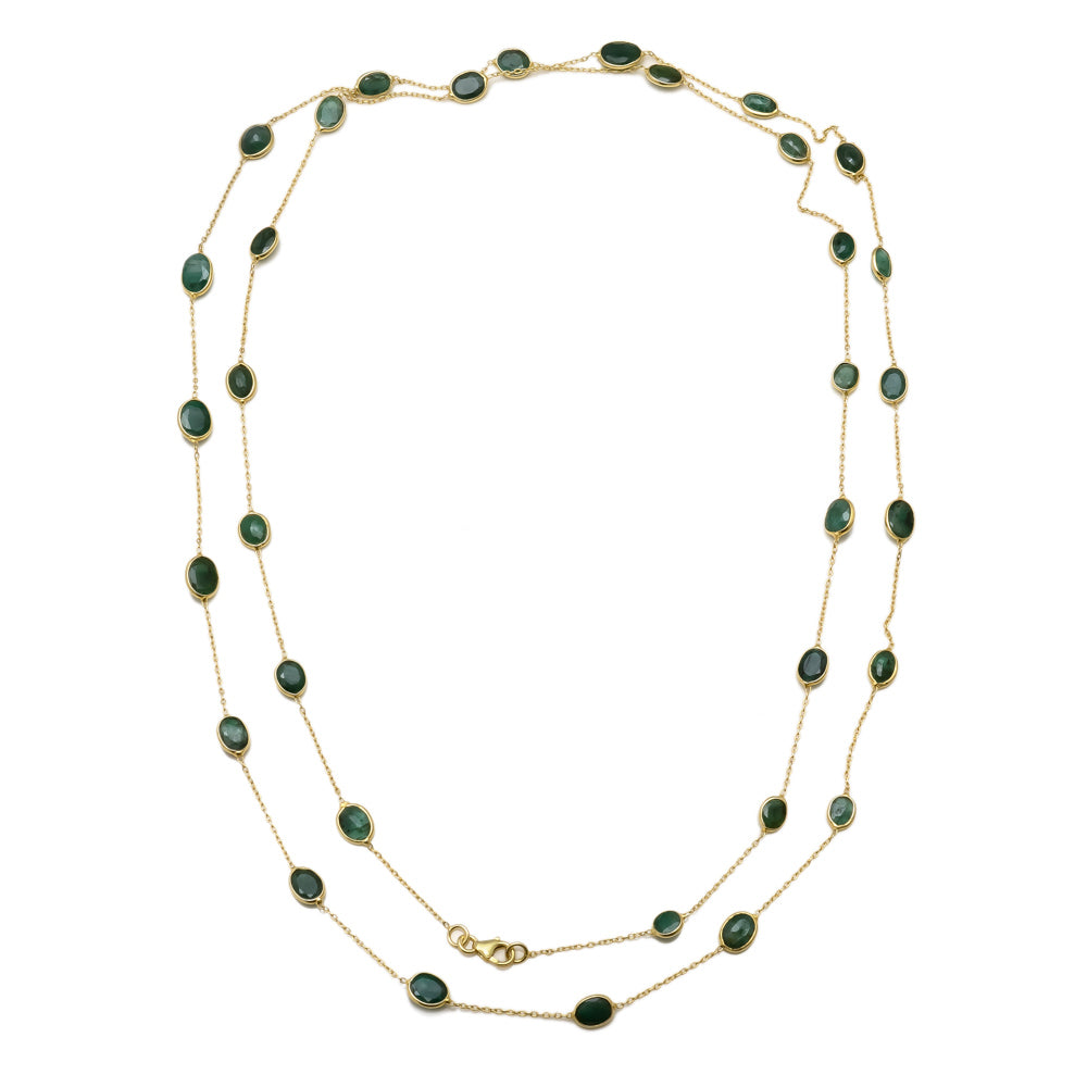 Multi shaped emeralds set in bezel setting strung together in a vermeil chain. The necklace comes with a lobster clasp allowing it to be worn in a double strand.