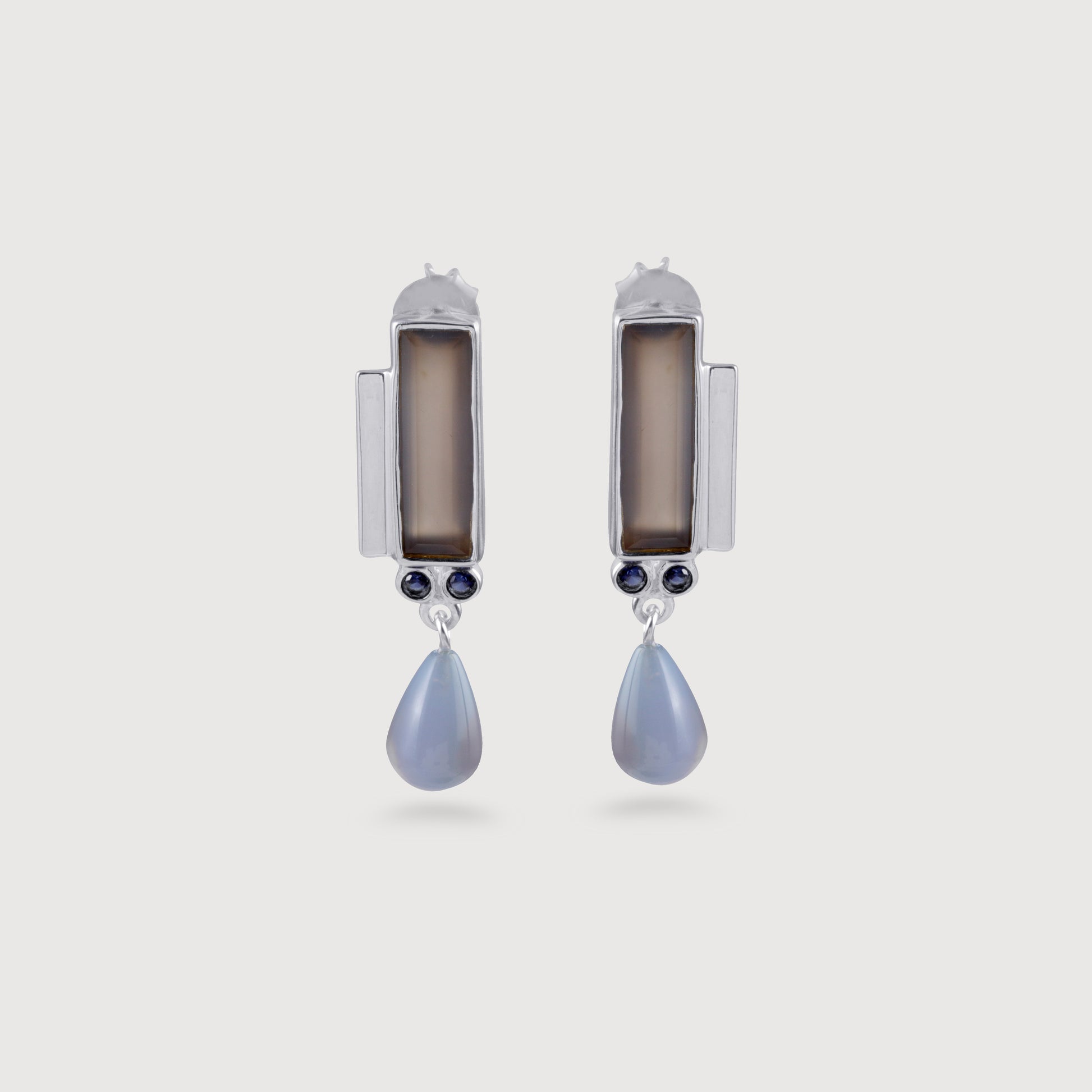 Earrings are available in two stone options - Black Onyx and Blue Chalcedony