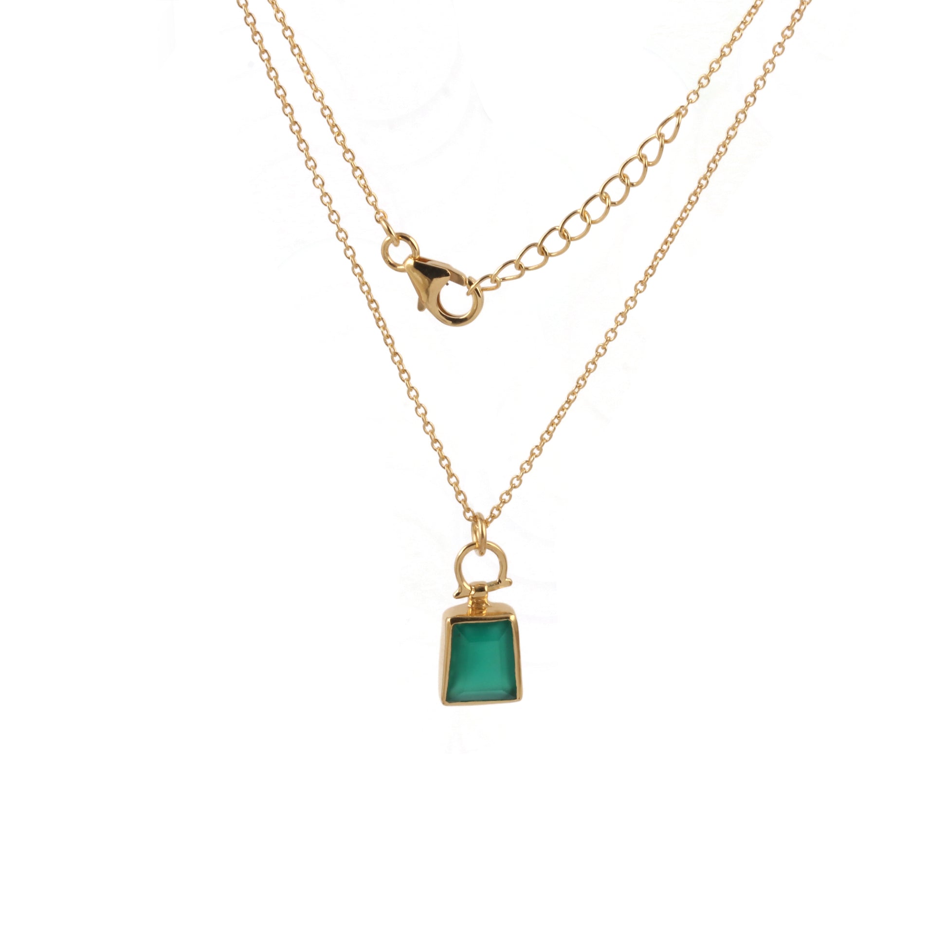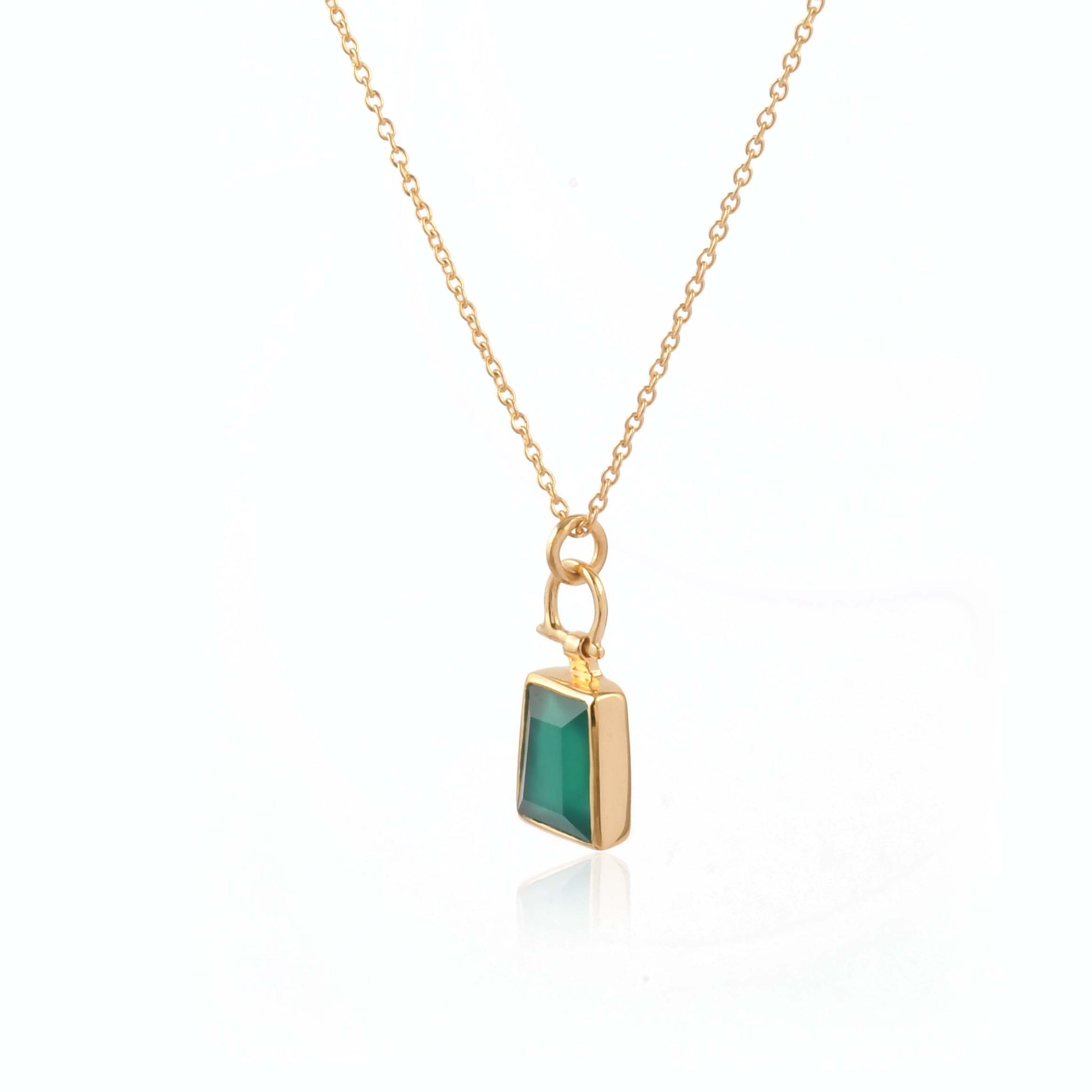 An everyday necklace - green onyx pendant strung in an 18" chain with extra links - layer it or wear it solo