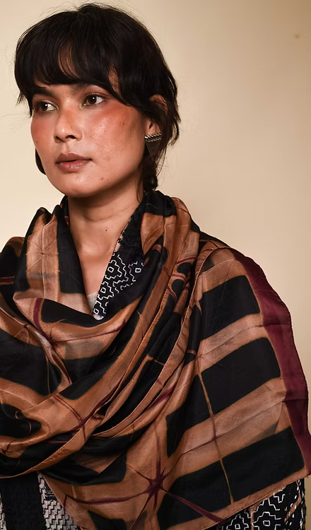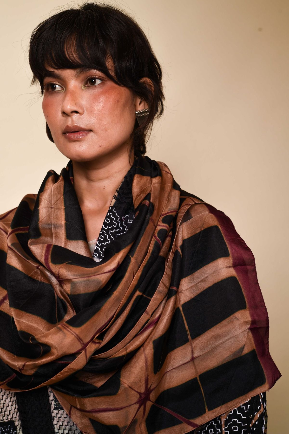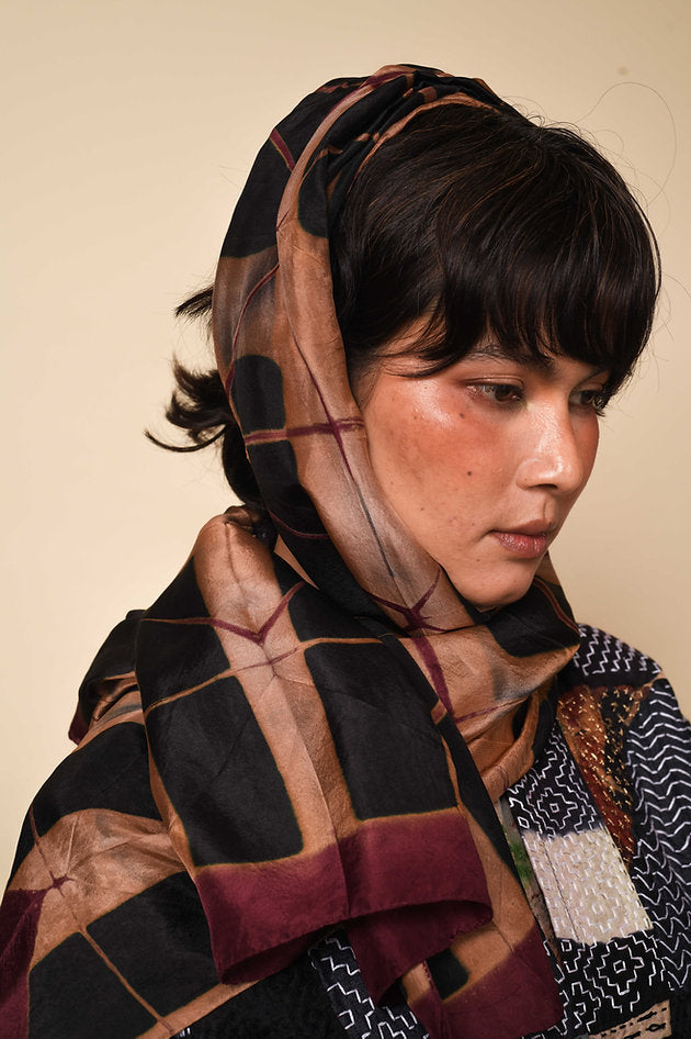 Light and luxurious habutai silk scarf, hand-dyed in the itajime shibori technique.