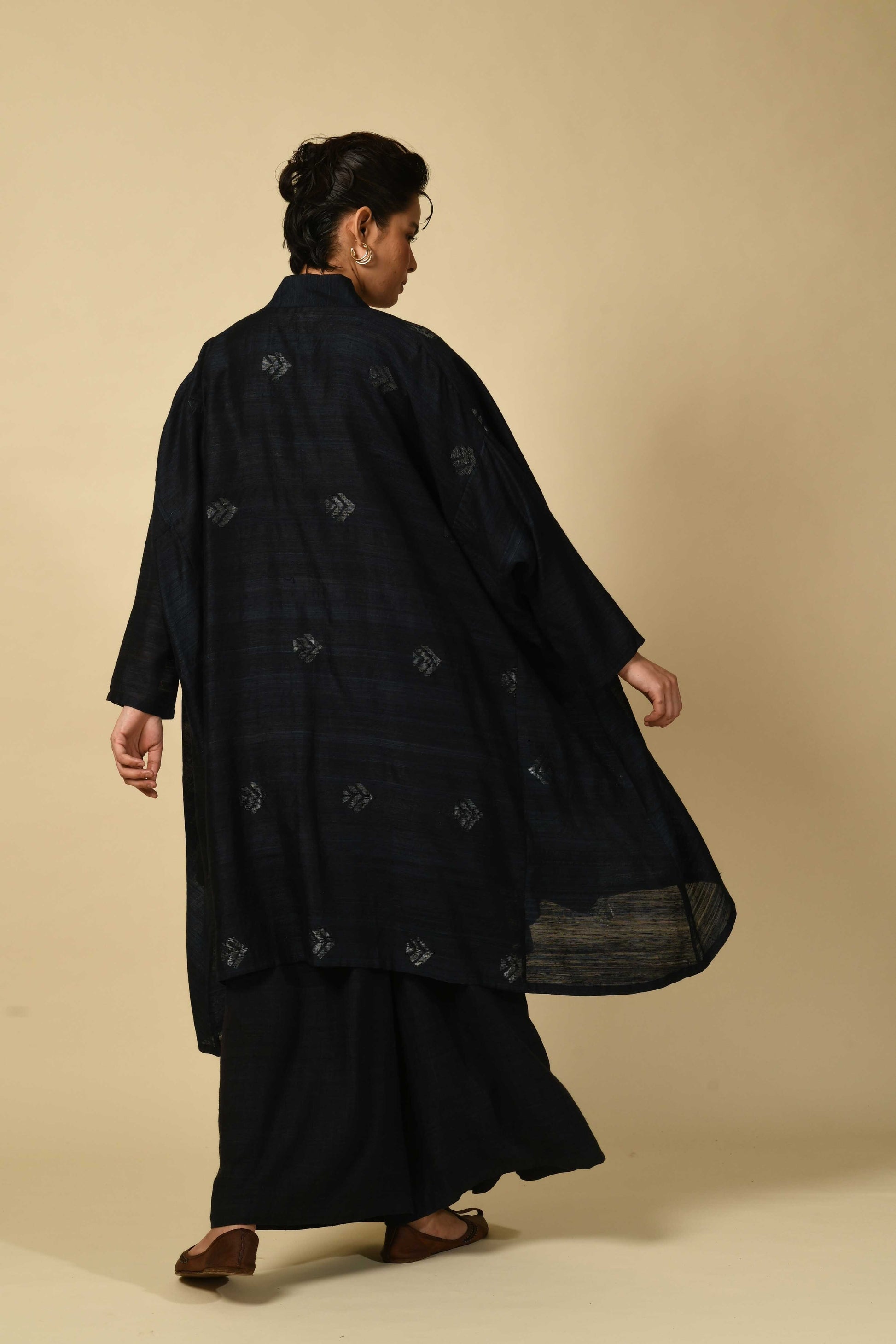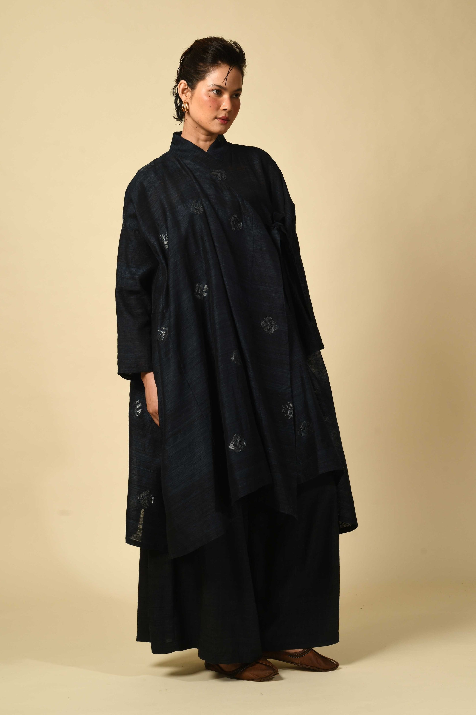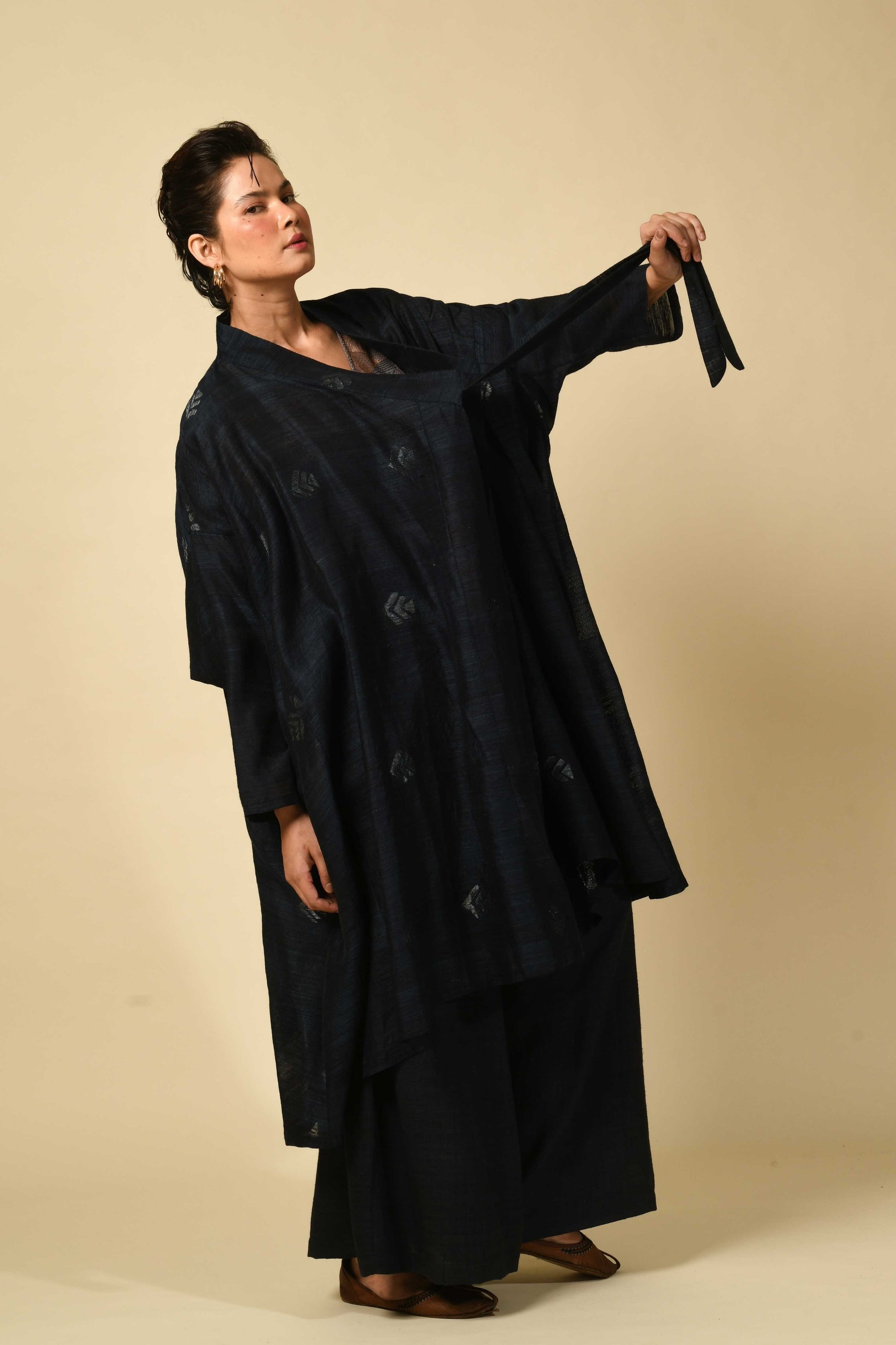 This extraordinary design traces its lineage to 19th-century Rajasthan. Inspired by the traditional atamsukh, literally “giver of pleasure to self”, and adapted from the original Jama Robe of Persian decent, we’ve reimagined this 200-year-old silhouette into a contemporary interpretation.