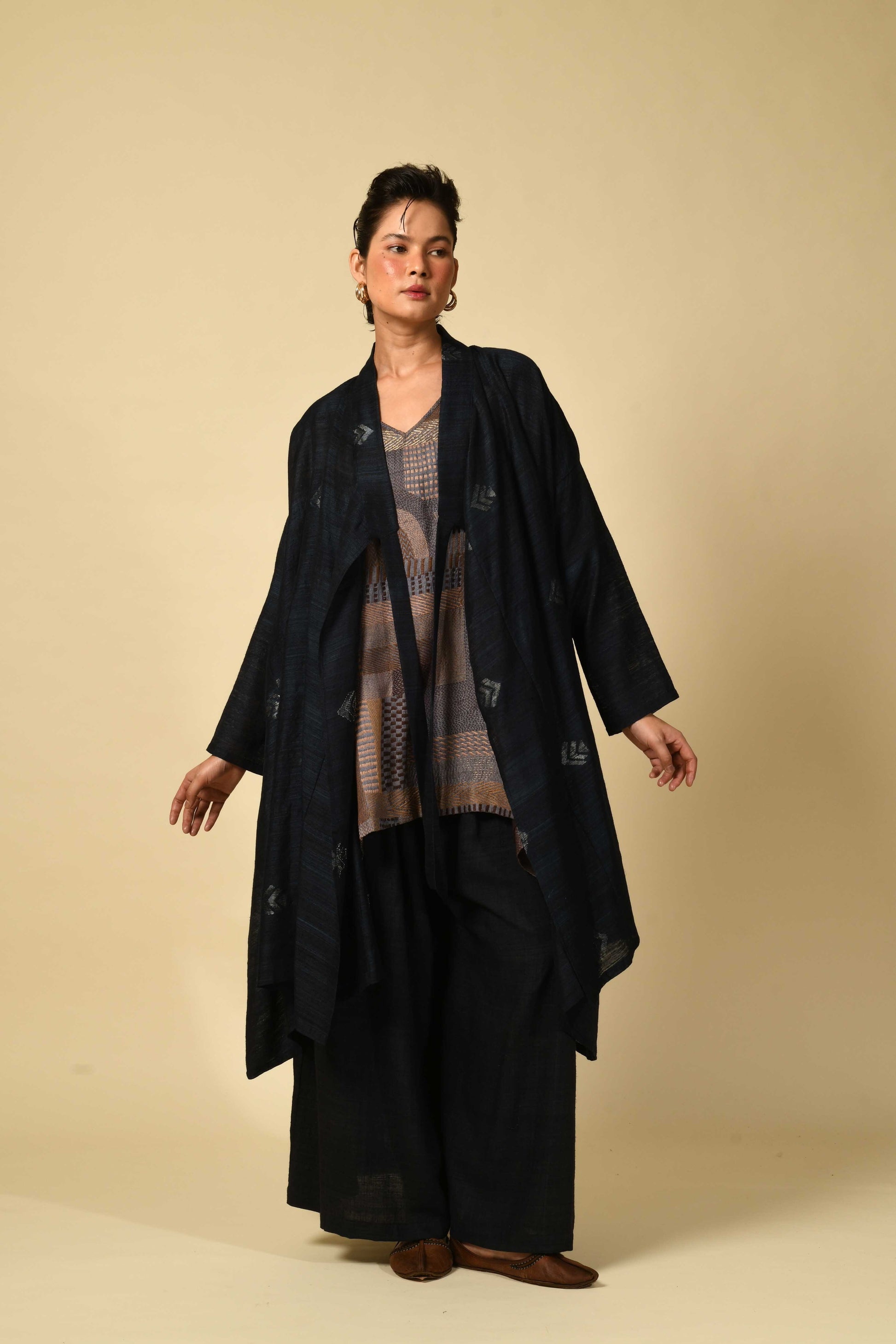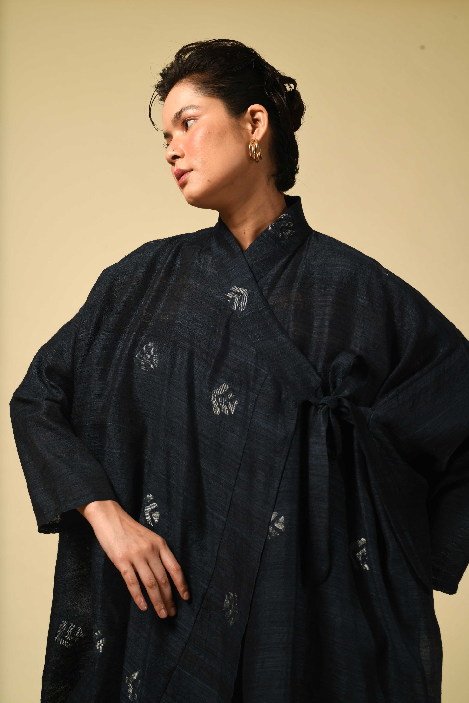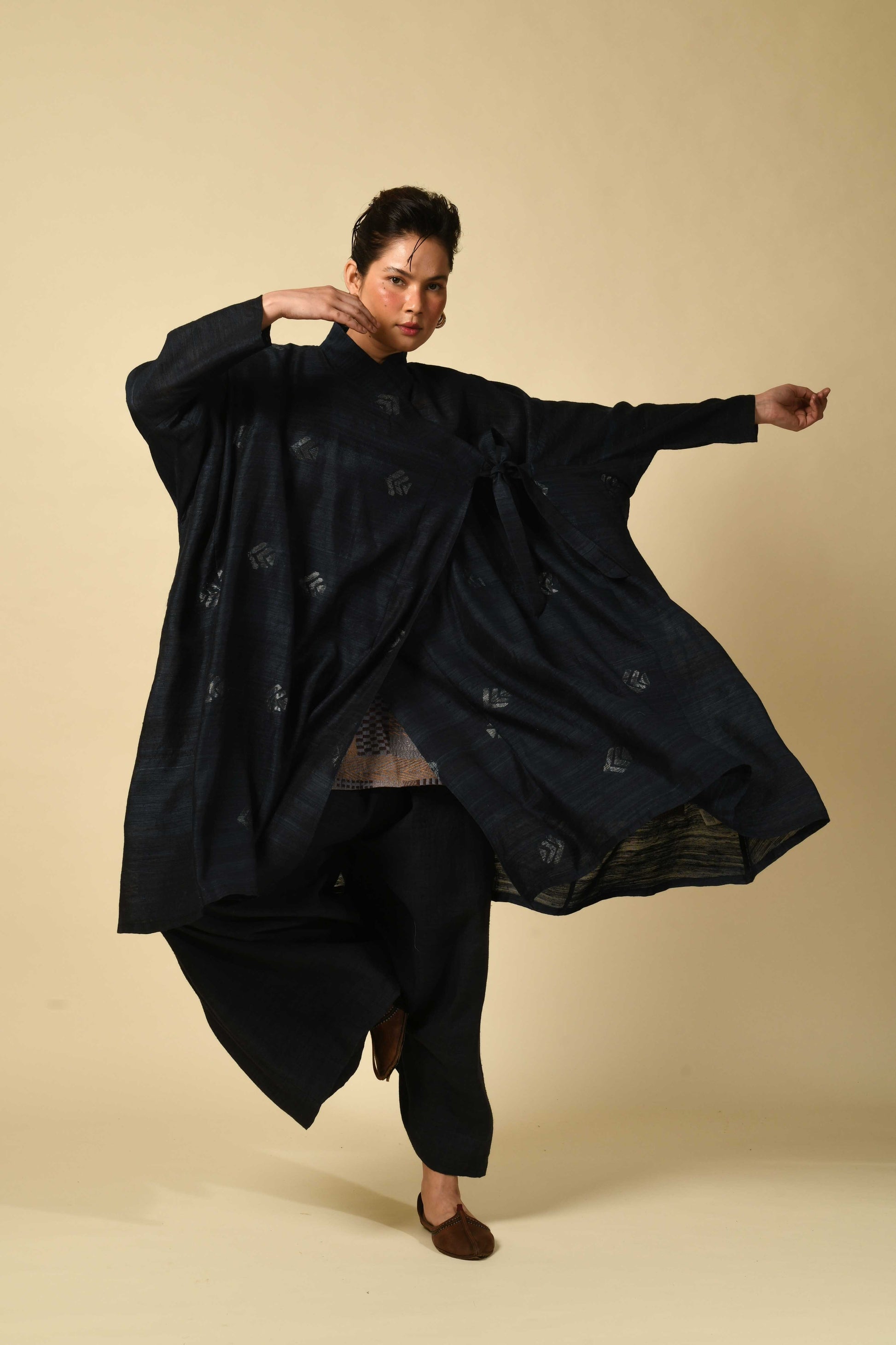 This extraordinary design traces its lineage to 19th-century Rajasthan. Inspired by the traditional atamsukh, literally “giver of pleasure to self”, and adapted from the original Jama Robe of Persian decent, we’ve reimagined this 200-year-old silhouette into a contemporary interpretation.