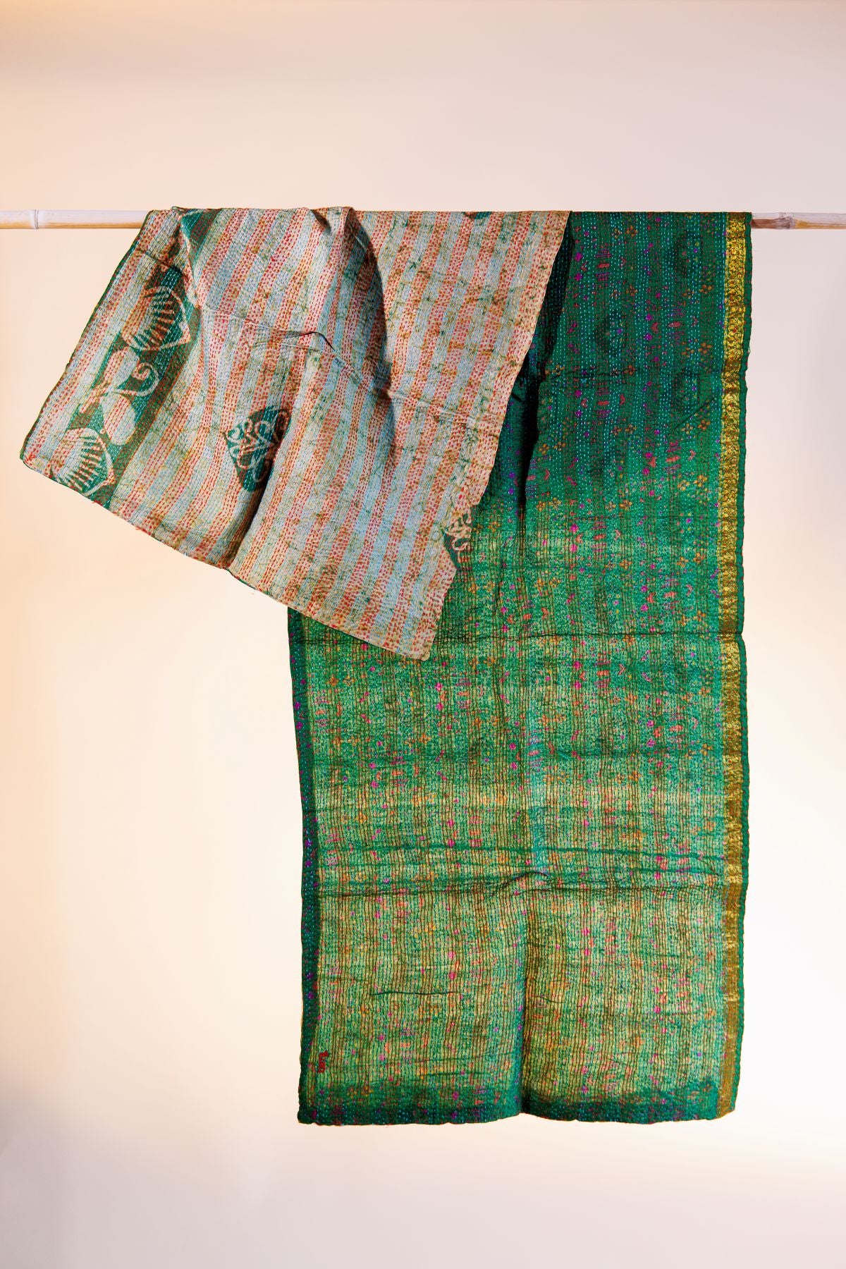 Our signature Kantha Sari Scarves, Wraps & Shrugs were the very first products made by House of Wandering Silk way back in 2011! Each is made using two layers of repurposed sari fabric, every piece handpicked by us for their fabulous colours and designs, & paired one by one in our studio.