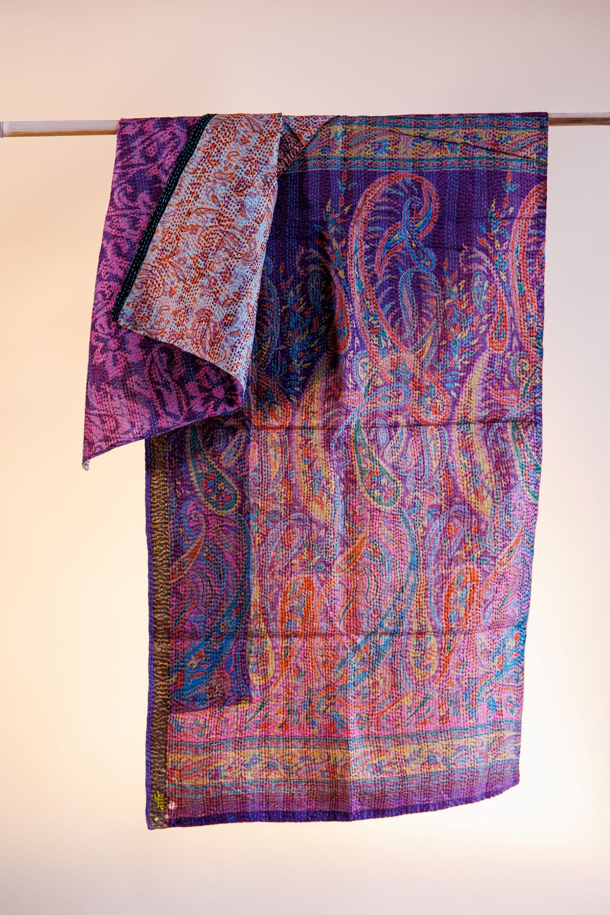 Our signature Kantha Sari Scarves, Wraps & Shrugs were the very first products made by House of Wandering Silk way back in 2011! Each is made using two layers of repurposed sari fabric, every piece handpicked by us for their fabulous colours and designs, & paired one by one in our studio.
