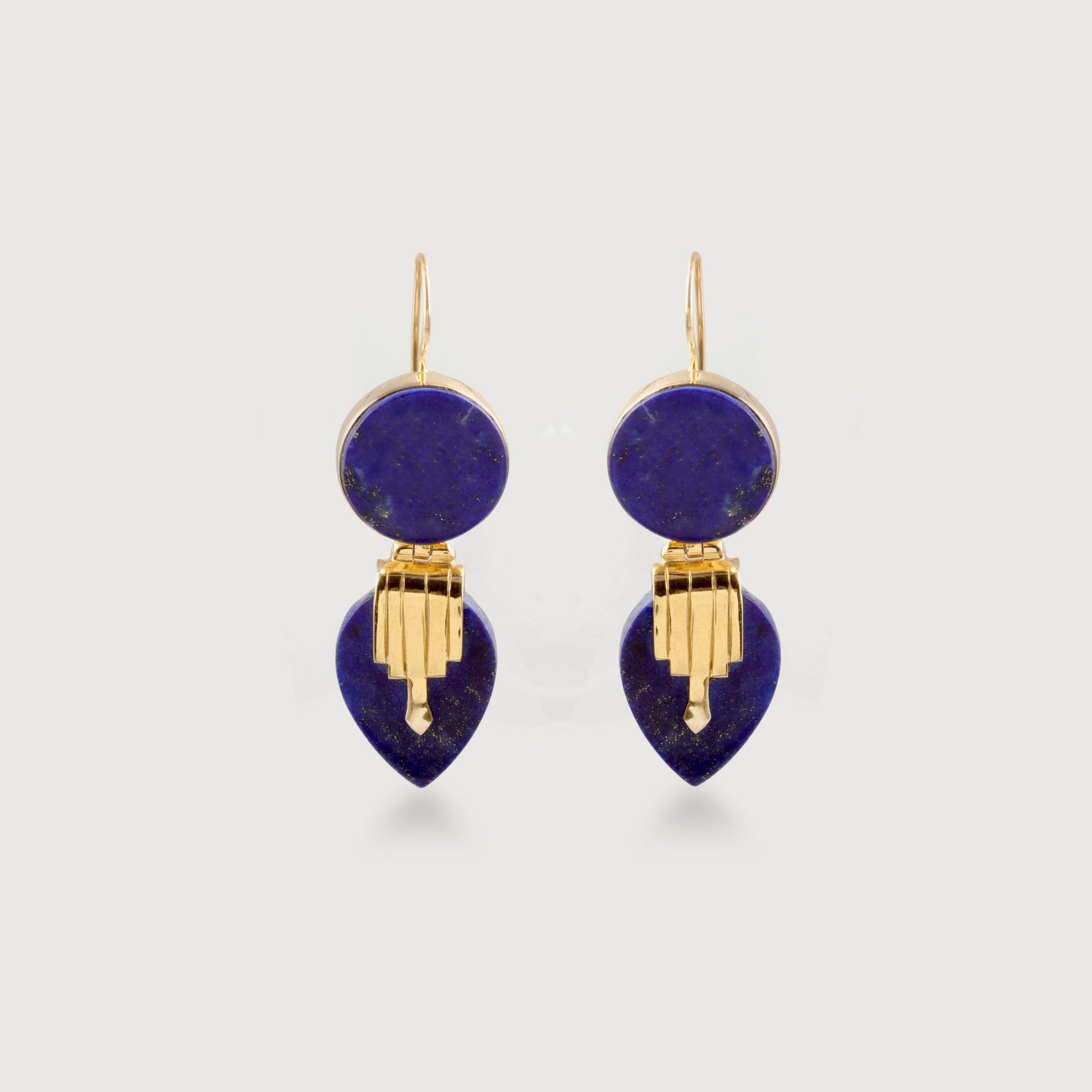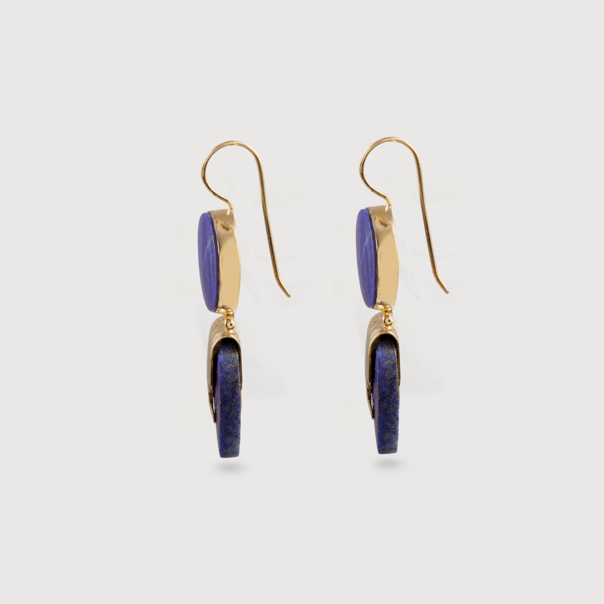 Flat cut lapis lazuli with ornate design embellished - these pair of earrings are the go to piece for the evening out!
