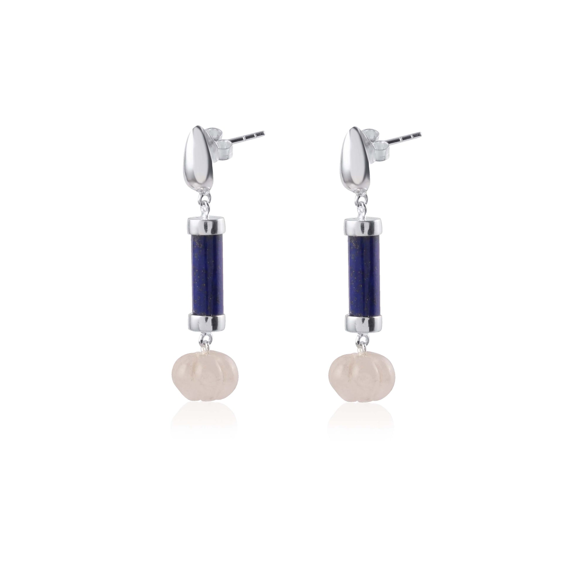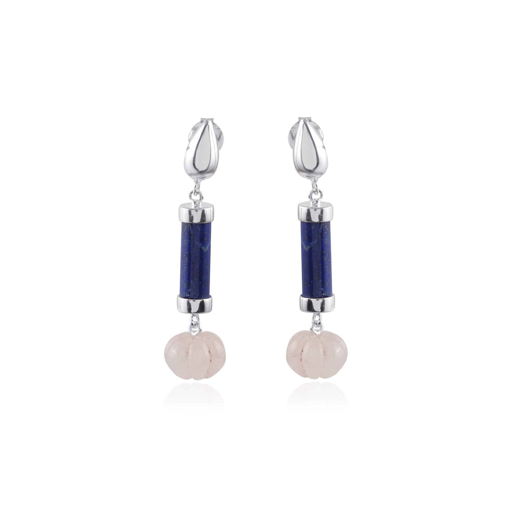 Tubed lapis strung together with a pumpkin carved rose quartz in sterling silver.