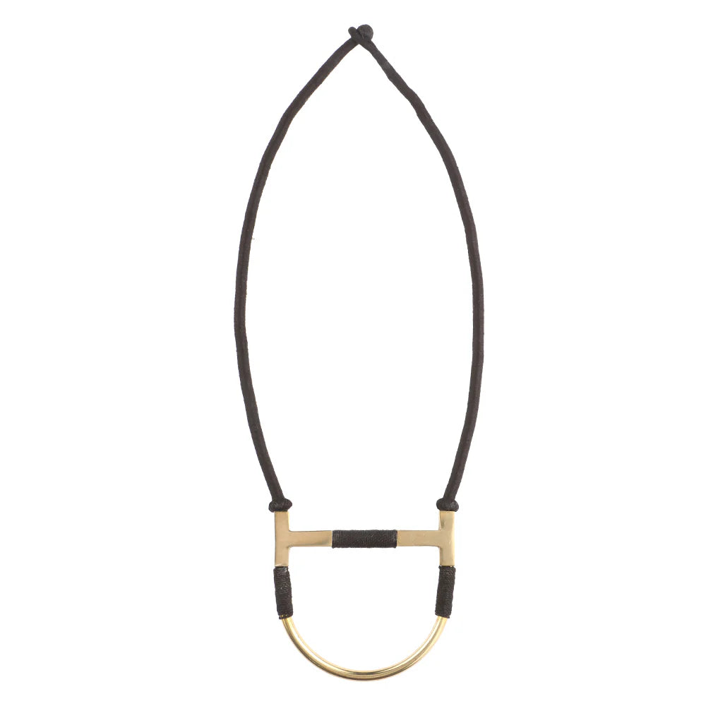 Be anything but basic in our Linea neckpiece. Designed with clean geometric lines, this Opera length neckpiece showcases architectural simplicity. Featuring brass tubes hand wrapped in black cotton yarn, it is quite a statement piece.
