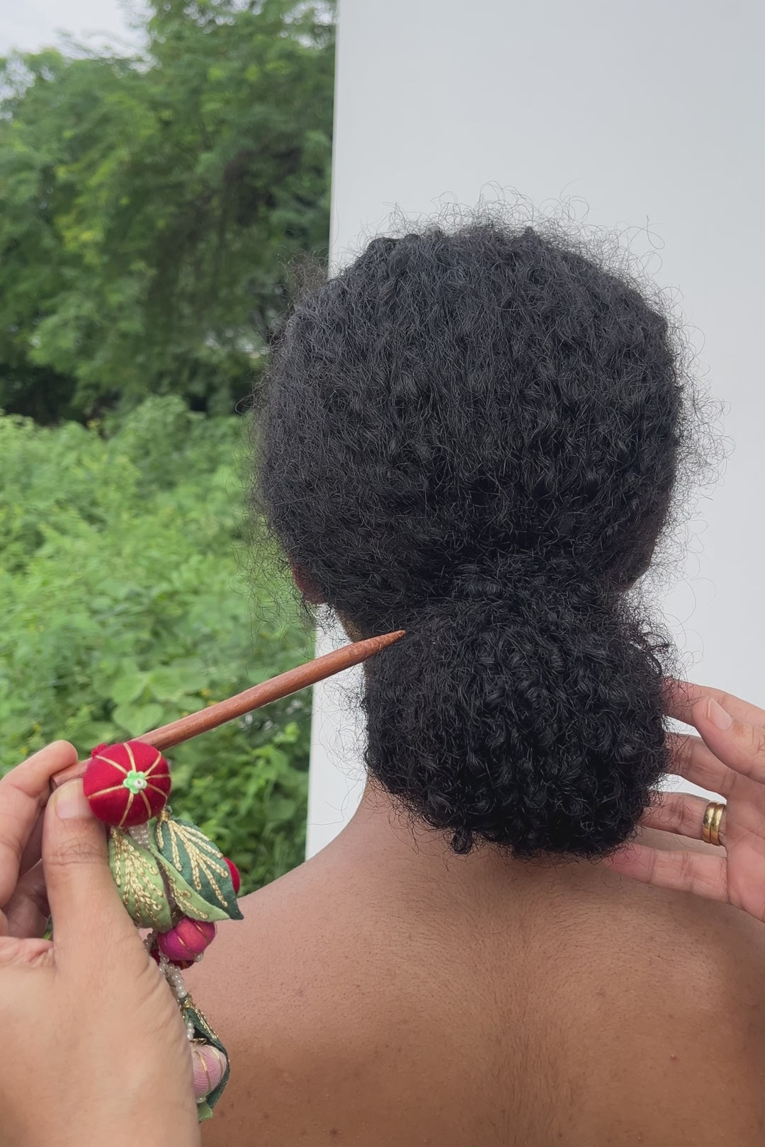 - Neatly tucked on a durable wooden Bun wooden stick.