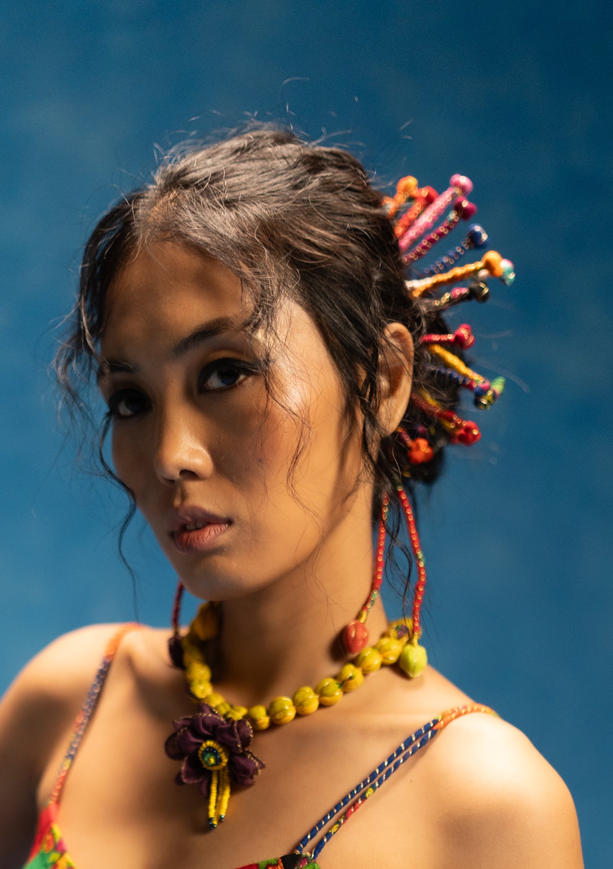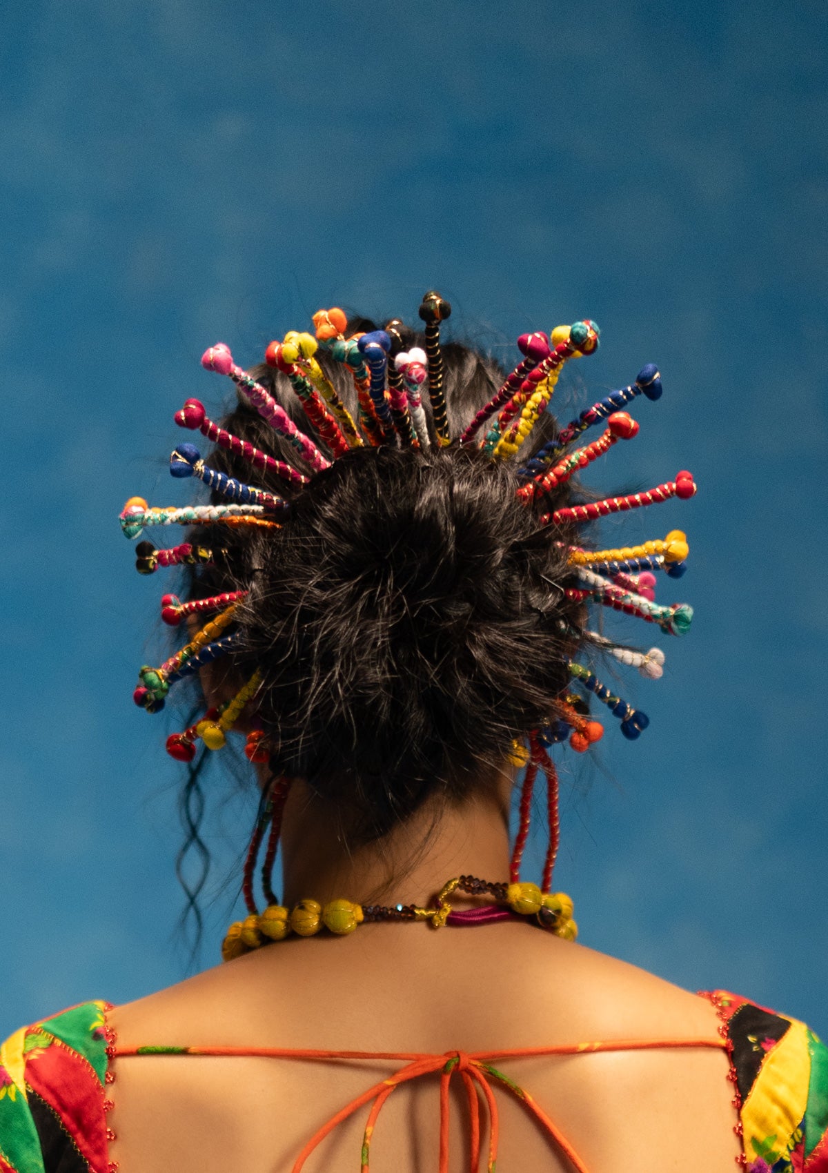A celebration of color and craft, the Megha Gajra made with threads, beads, and pom-poms for an artistic, one-of-a-kind appeal.