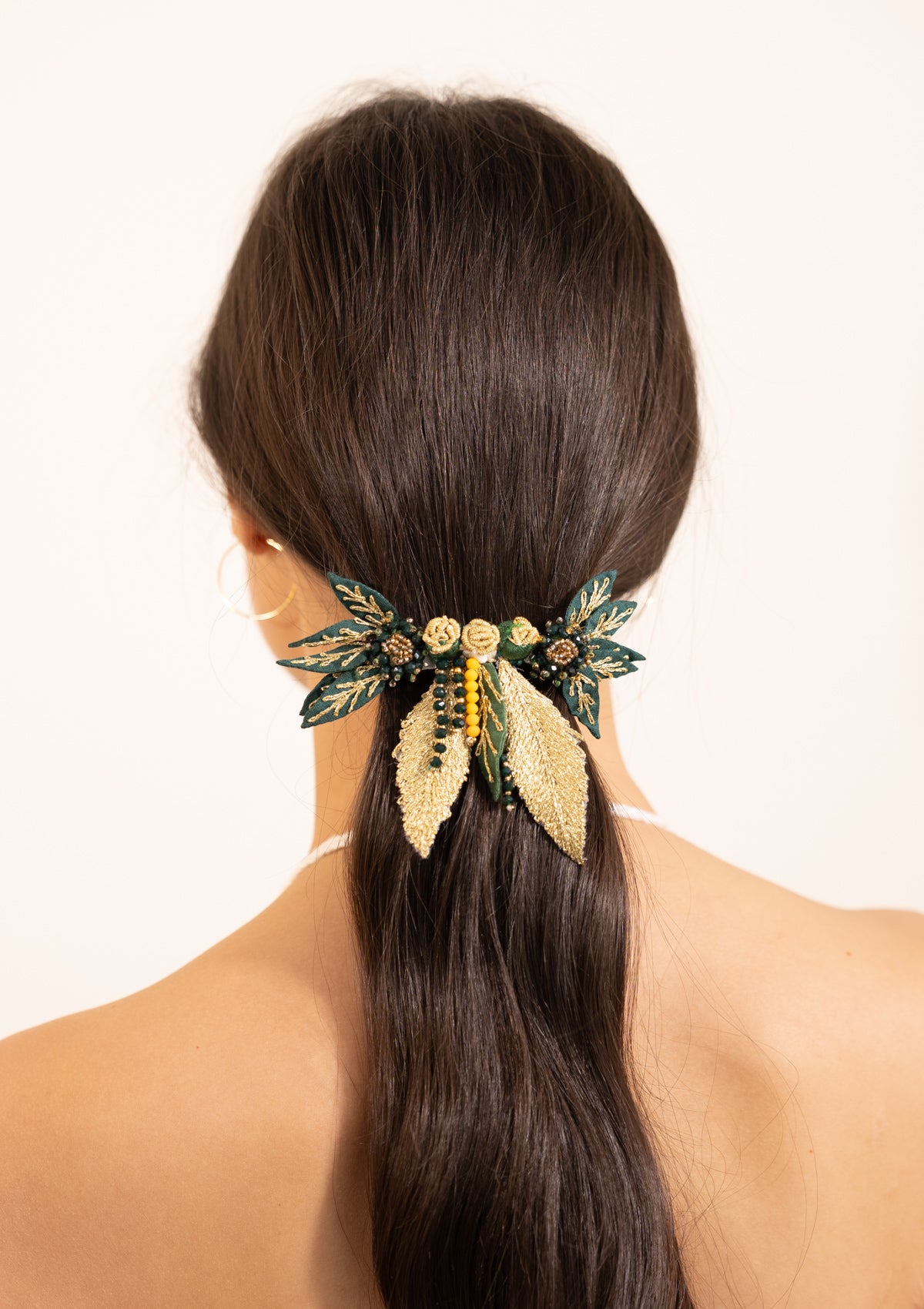 Moonlight clip features our artistic expression with a mix of flora, beads and hangings. Vivaciously bohemian and laboriously hand crafted.