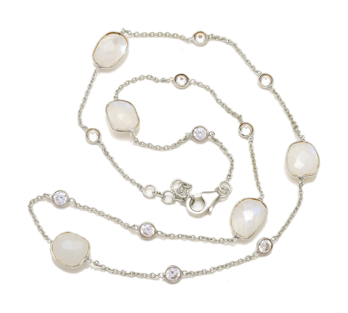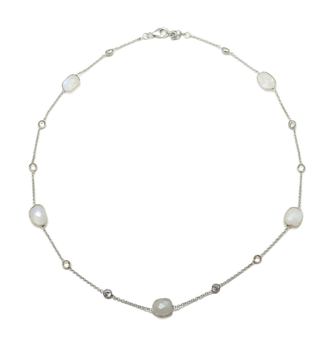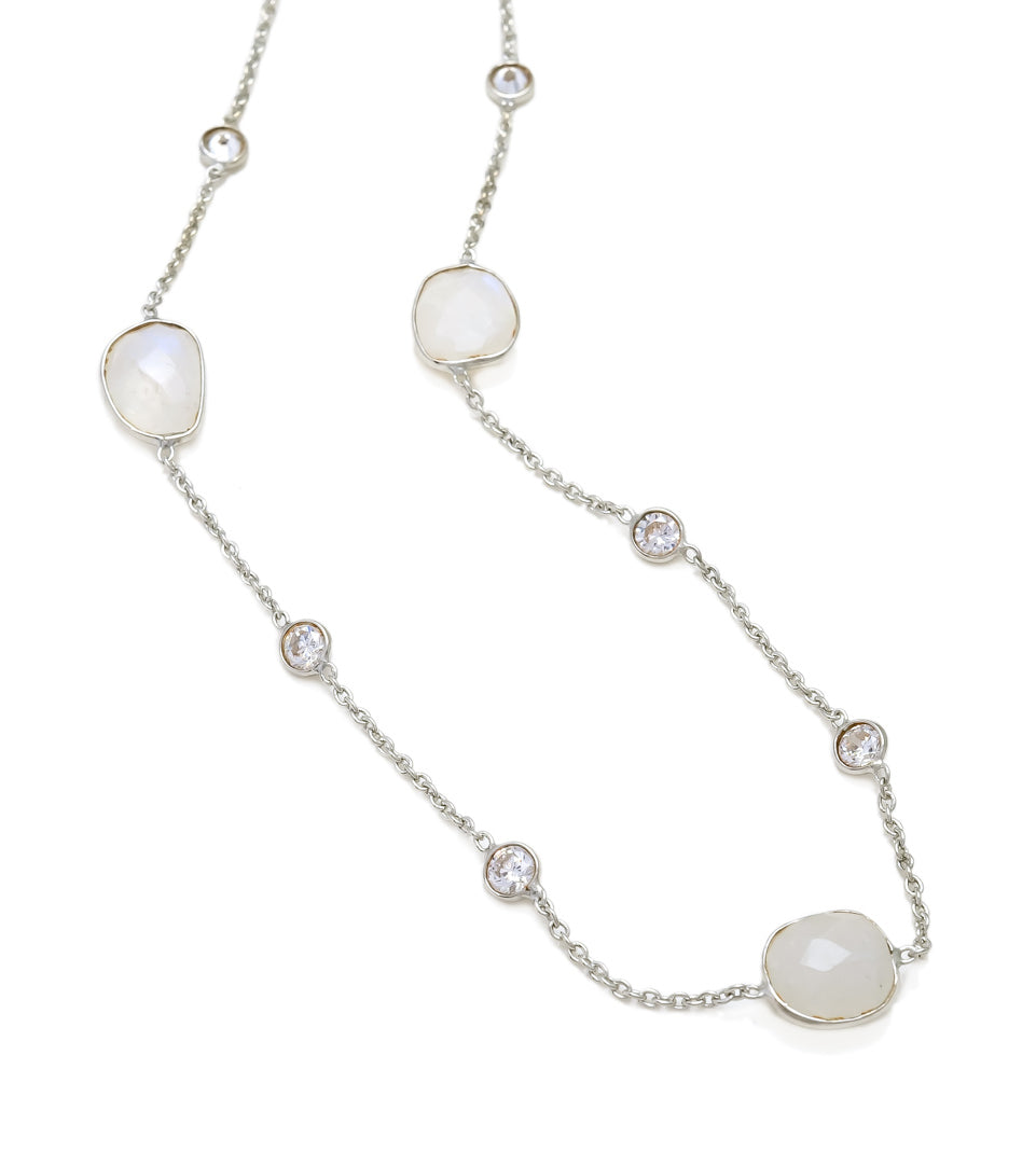For those who like it simple - moonstones strung together with cubic zirconia in a silver chain.