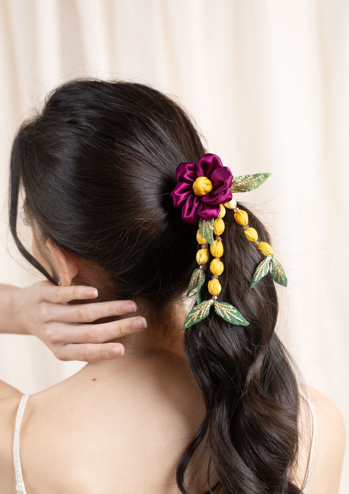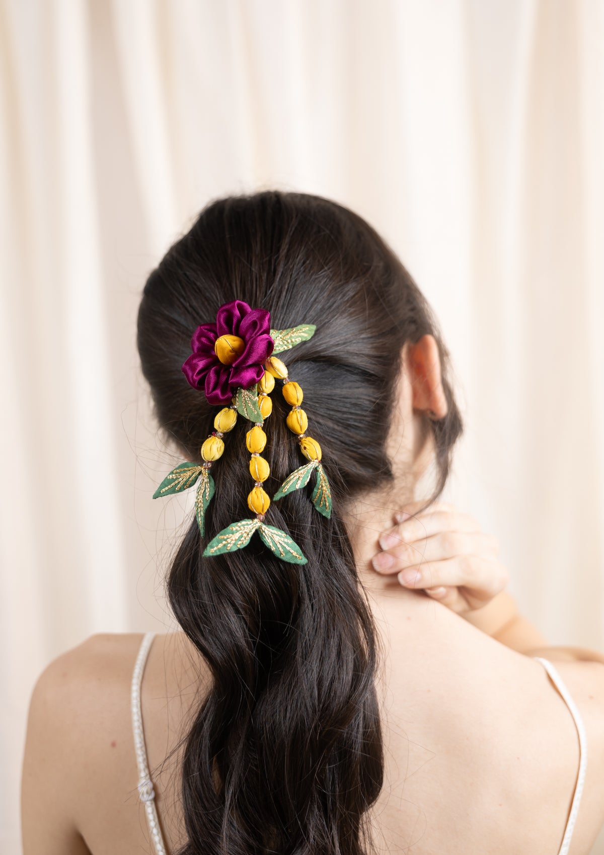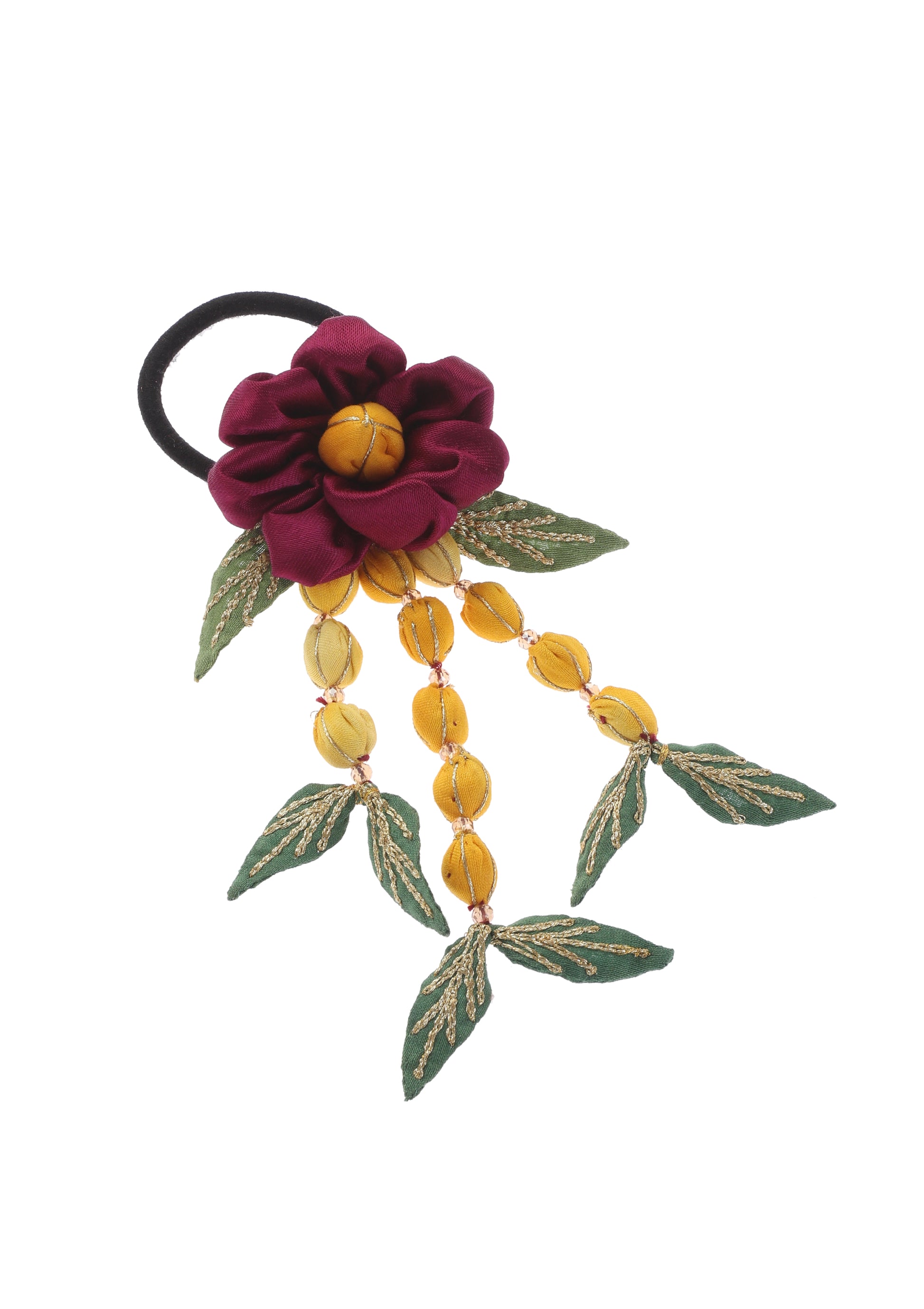 - Hand rolled flower bulbs are intricately crafted with soothing Vaijayanti Mala beads.