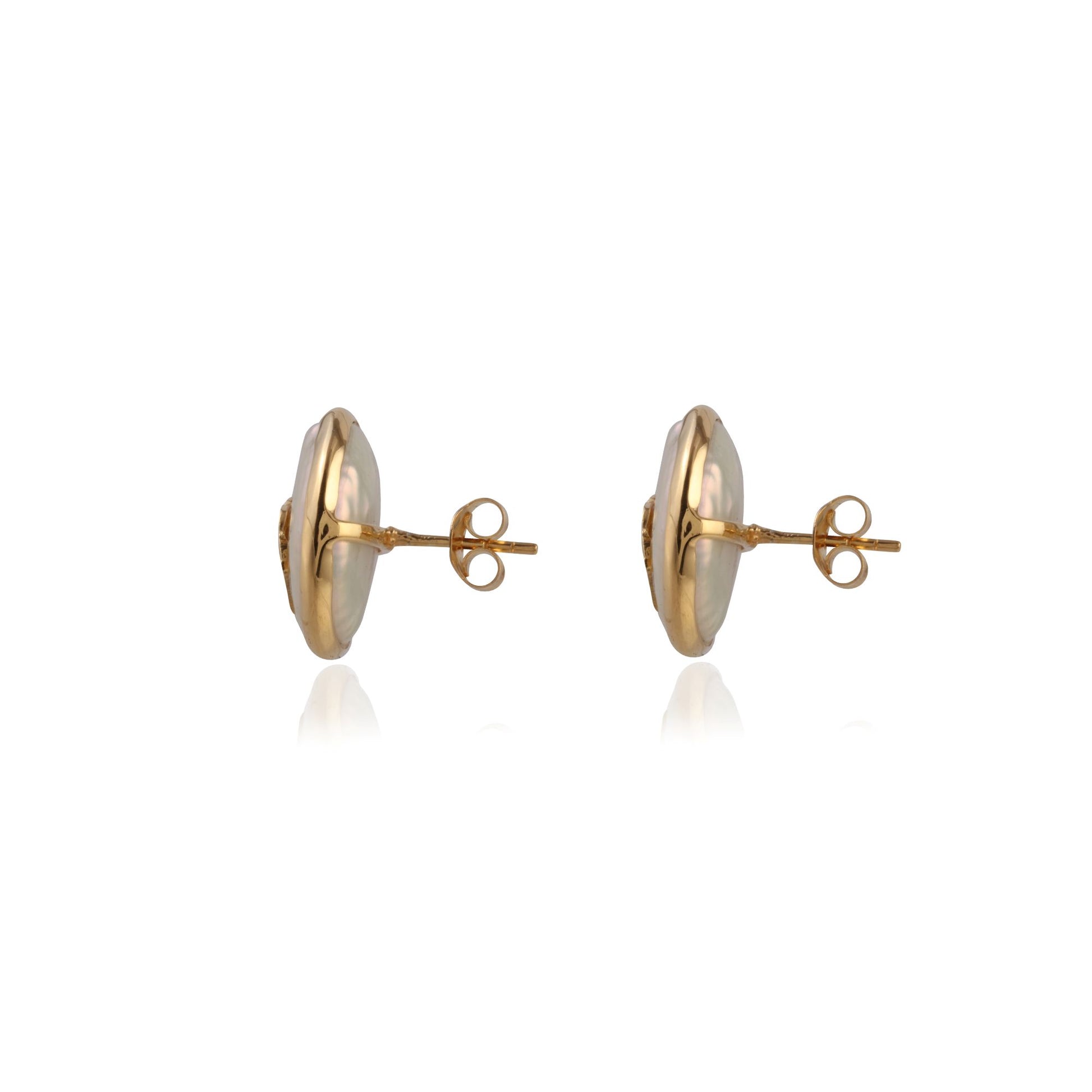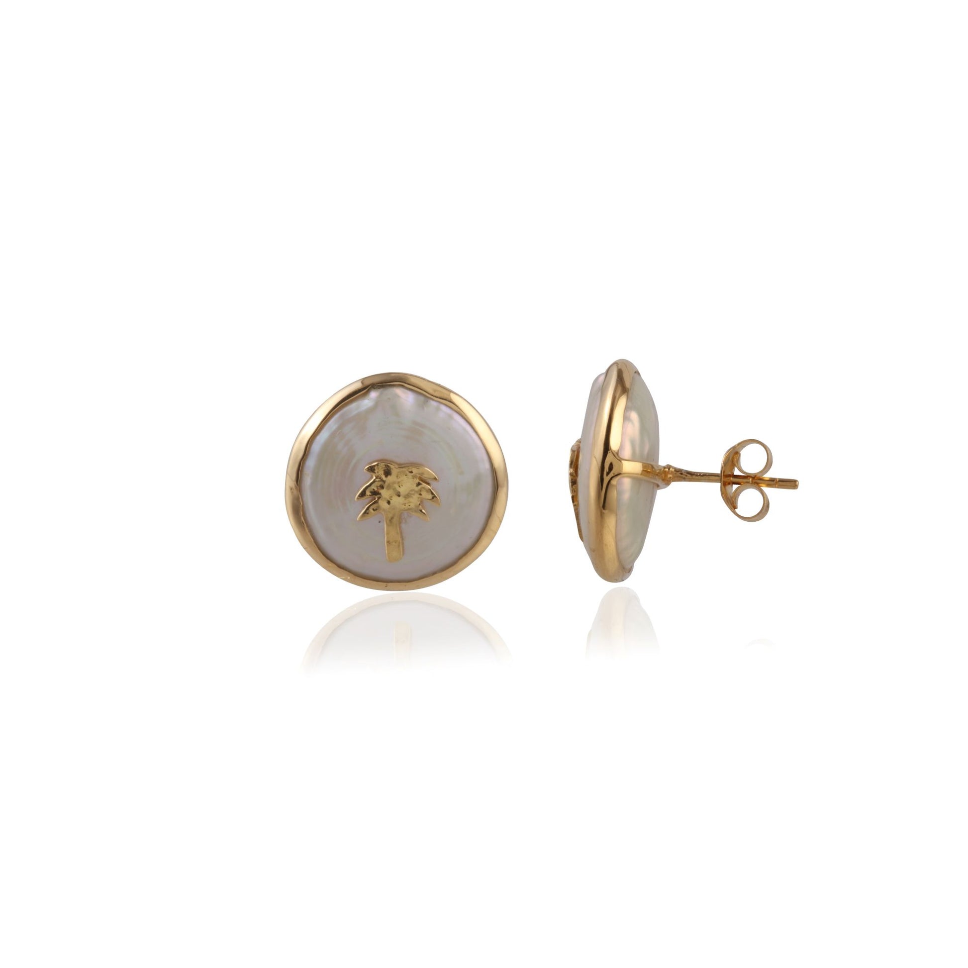 Flattened baroque pearl ring with a palm tree embellished on top - handcrafted in sterling silver with gold plated finish.
