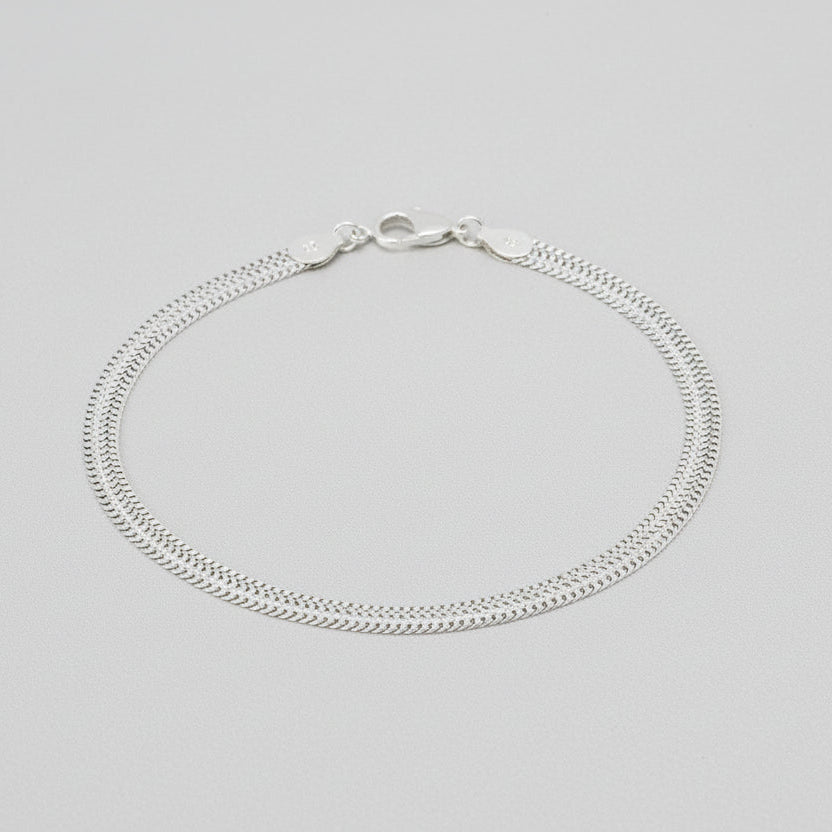 Crafted from 925 sterling silver, this piece features an intricate wheat chain design that catches the light beautifully. Measuring 6mm wide and 10.5 inches long, it offers the perfect balance of delicate elegance and substantial presence. The timeless wheat pattern adds sophisticated texture while maintaining a versatile style.