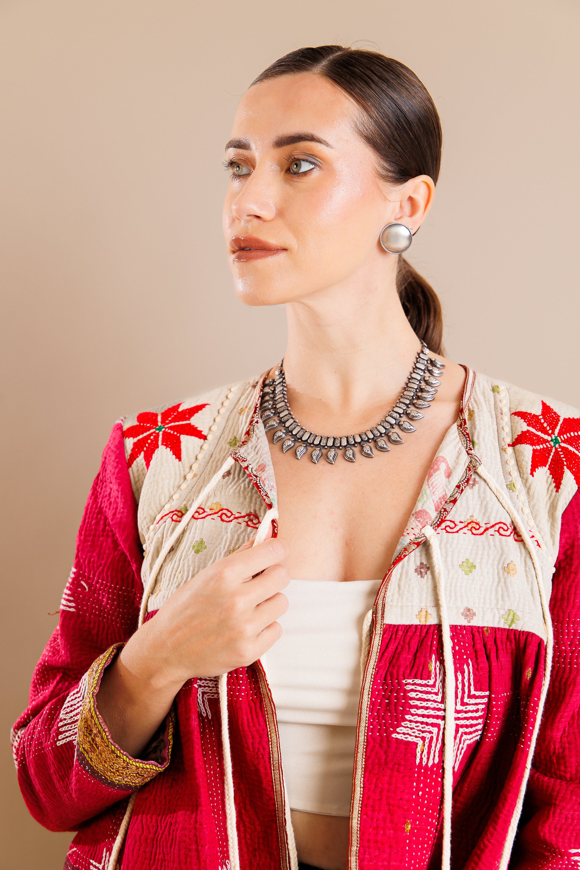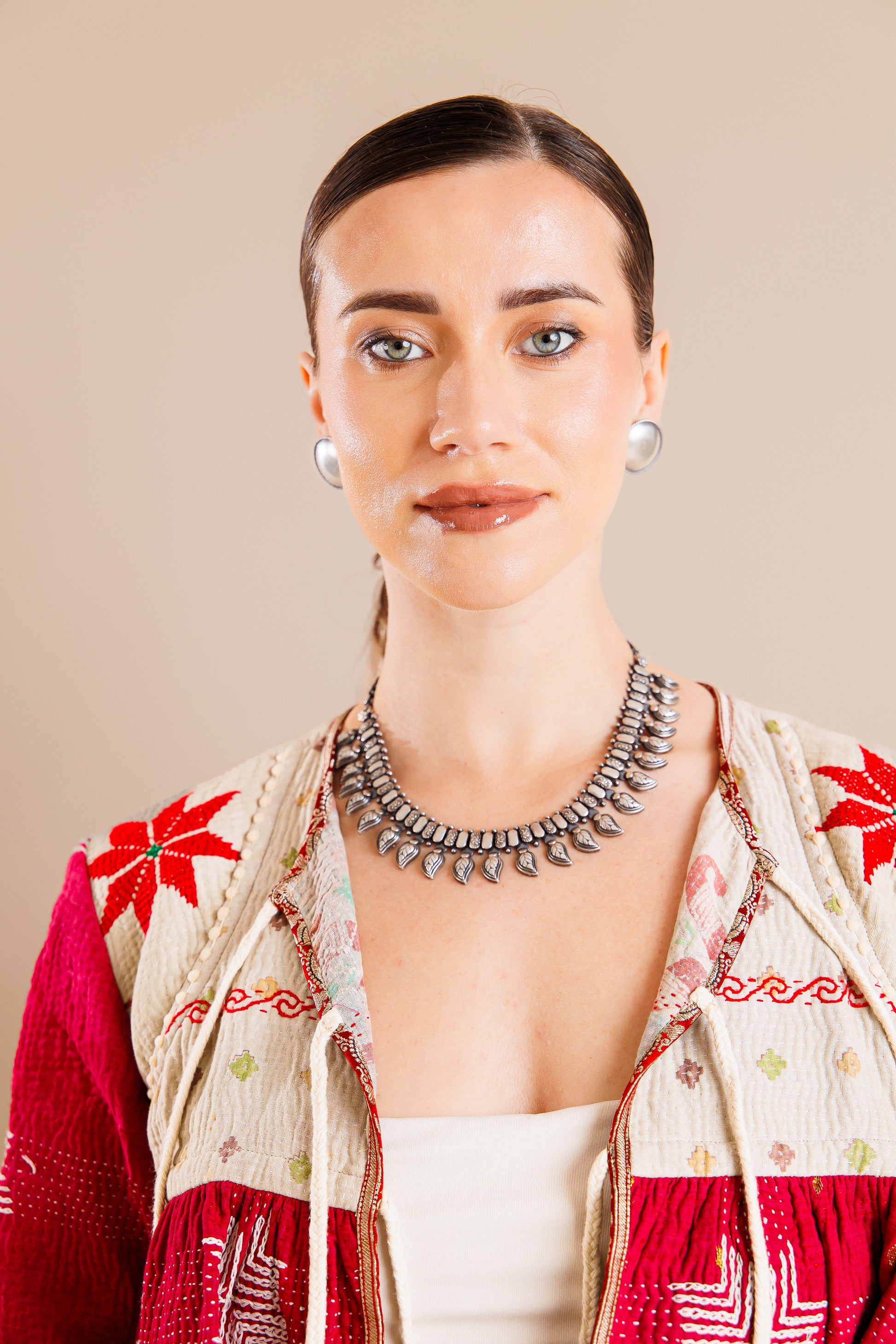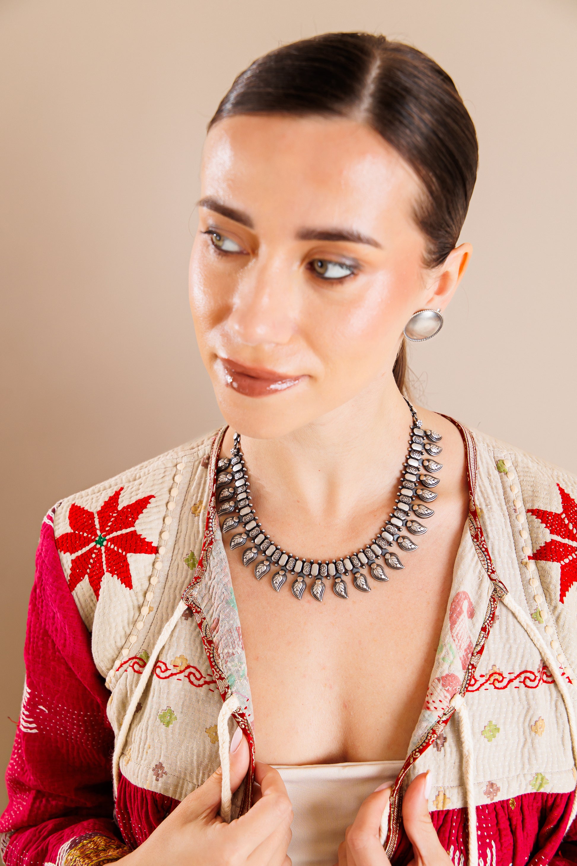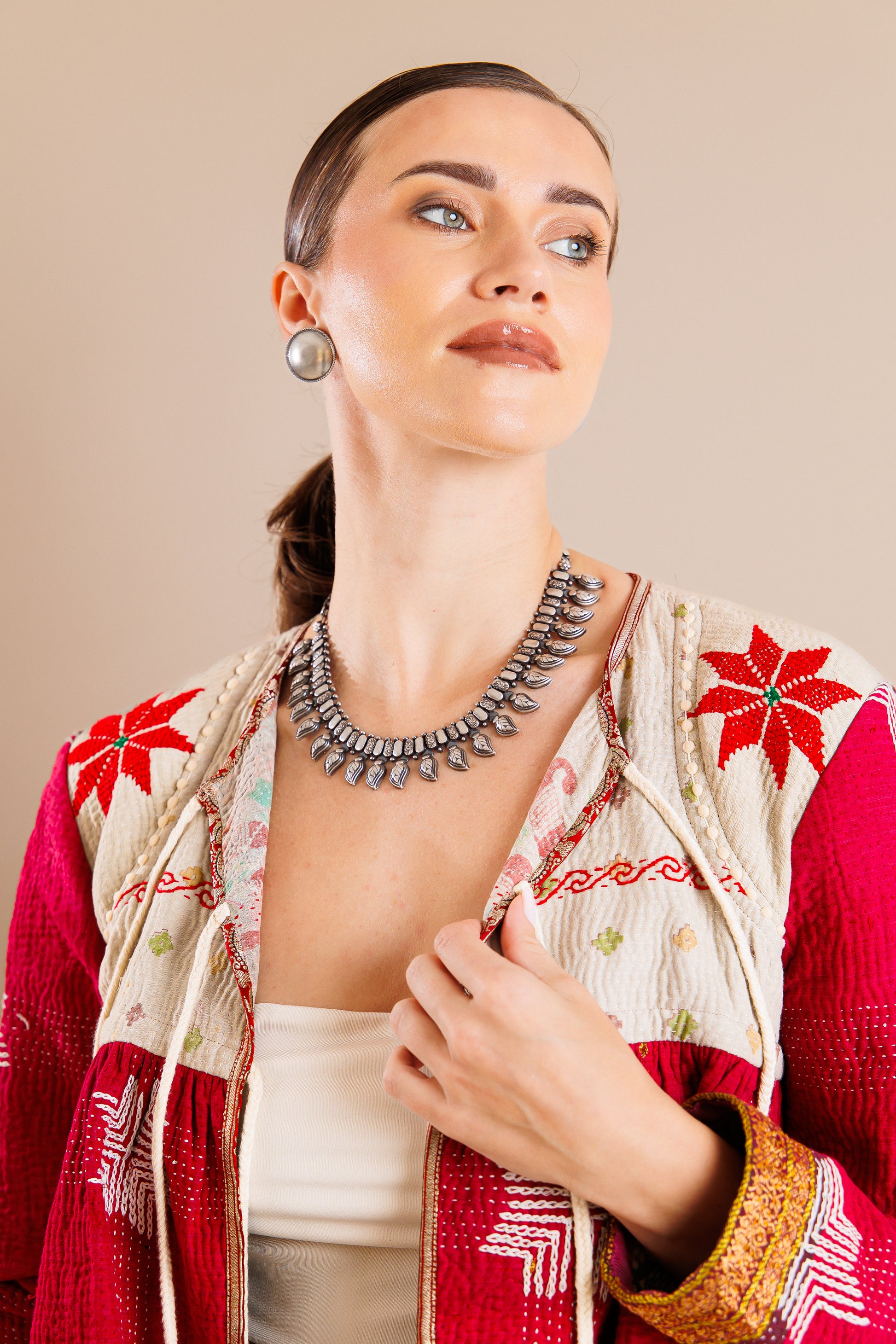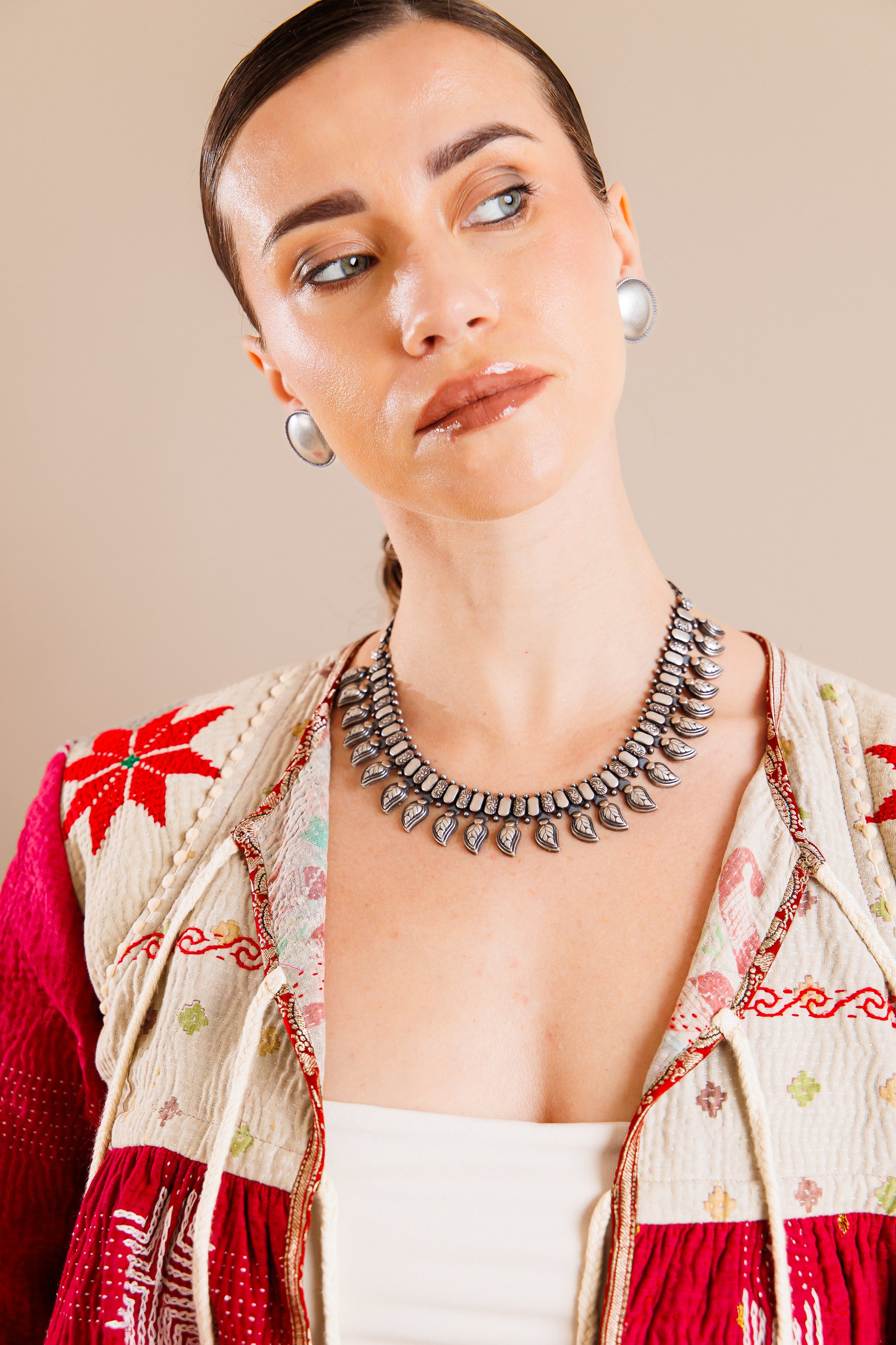From the finds of our Jaipur travels - this is a bohemian collar necklace with paisly motifs throughout.