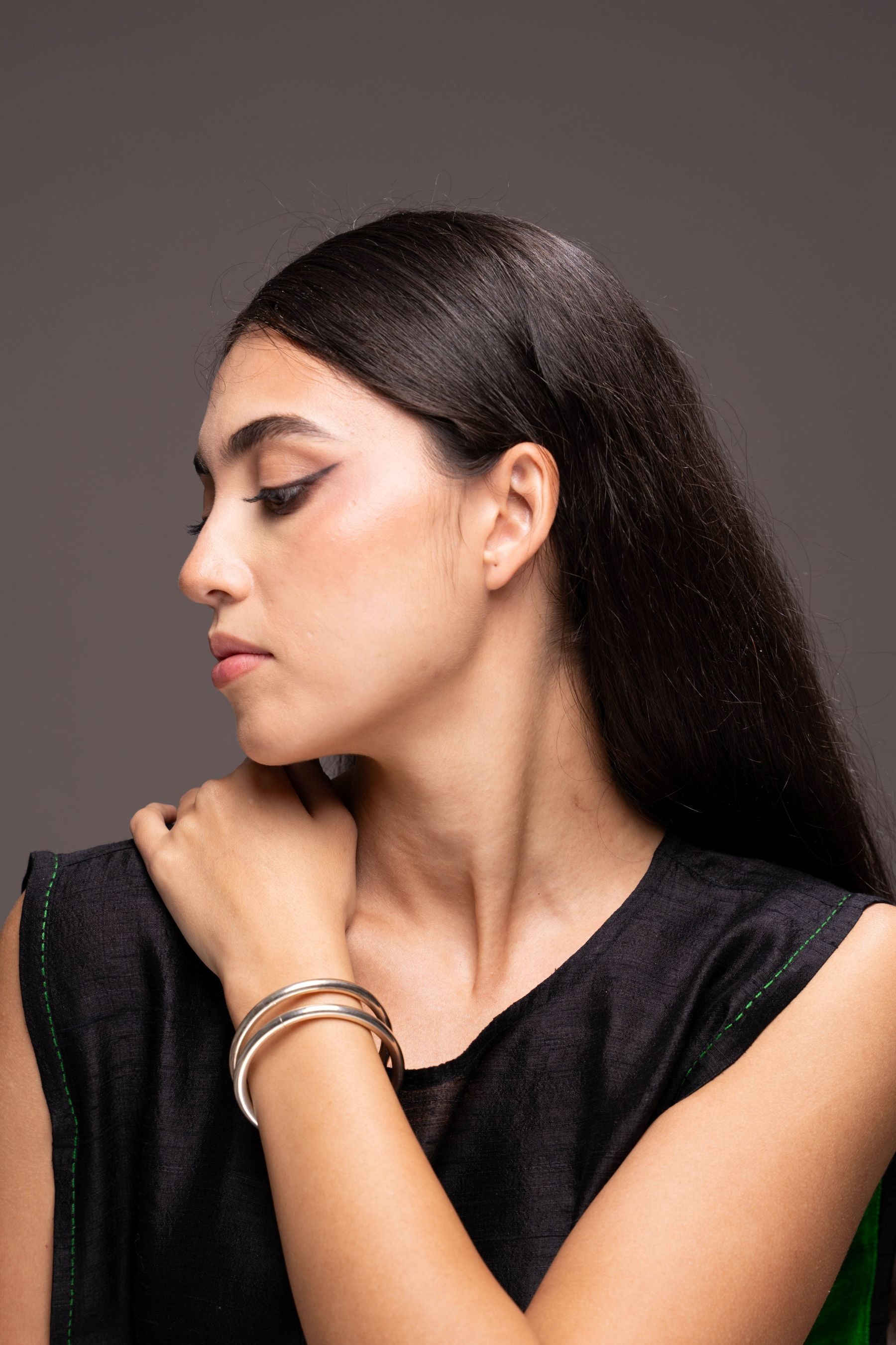 Plain silver bangles never really go out of fashion - do they. Wear them on their own or layer them bracelets. Thickness of this plain silver bangle is 5.6 mm