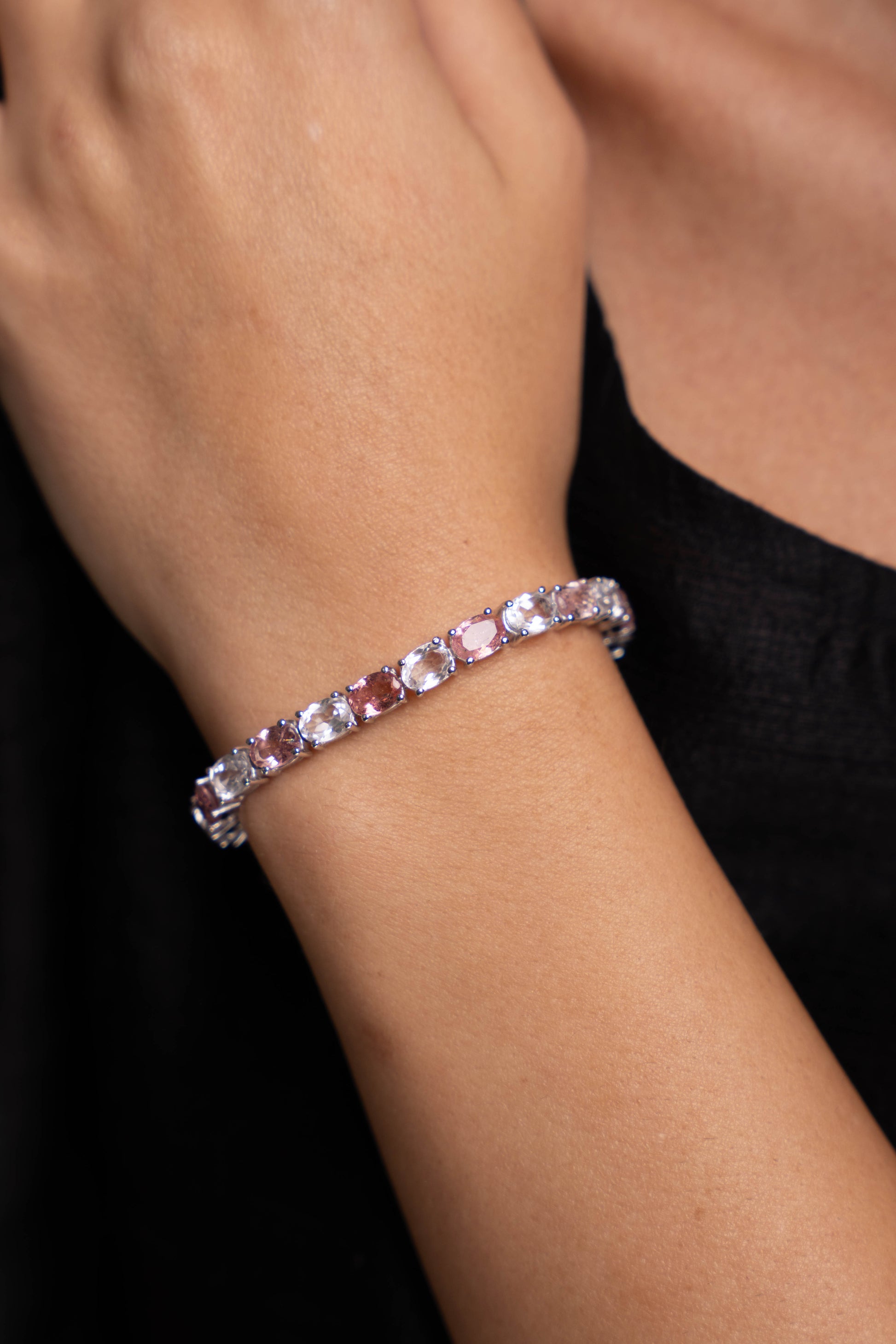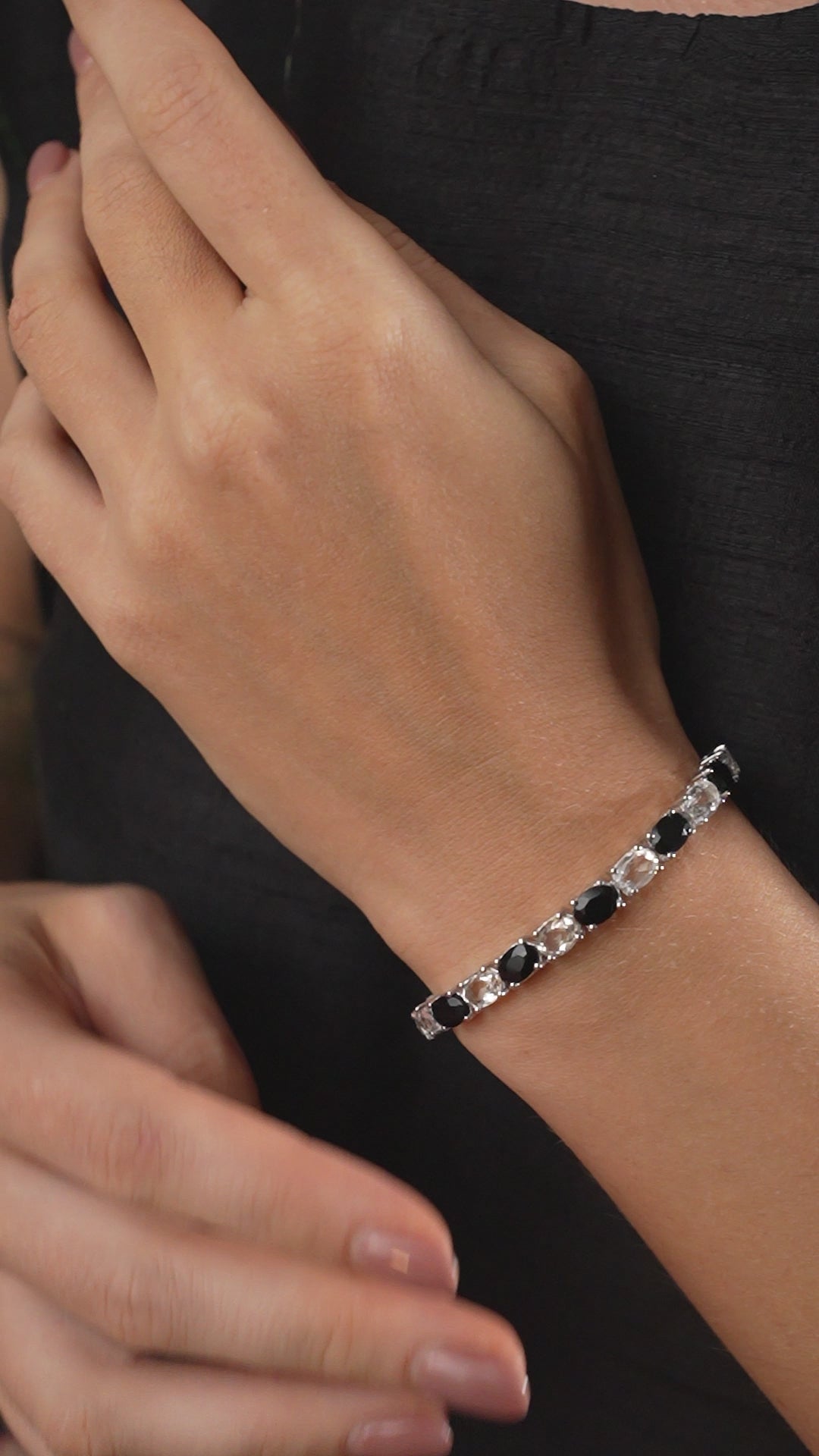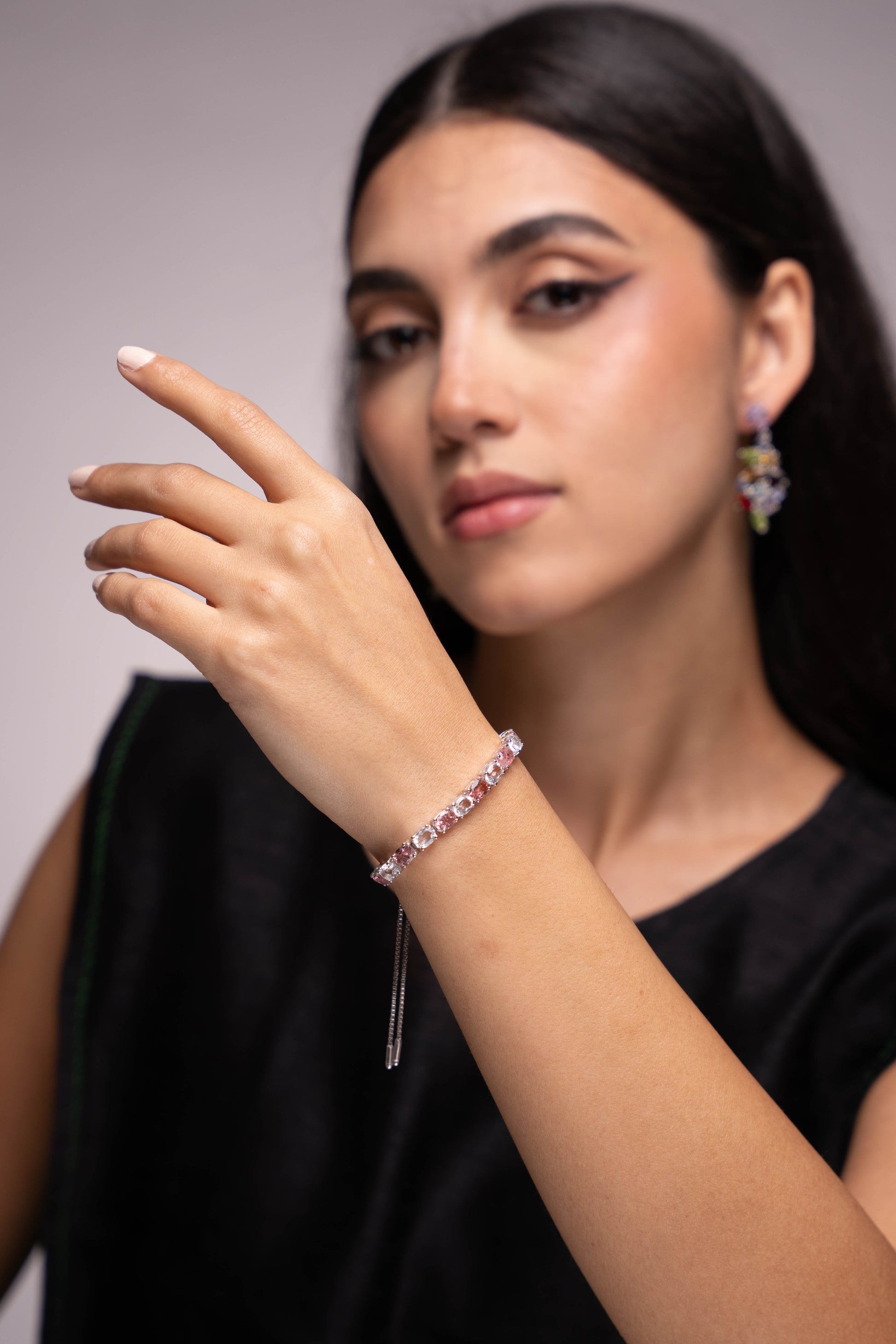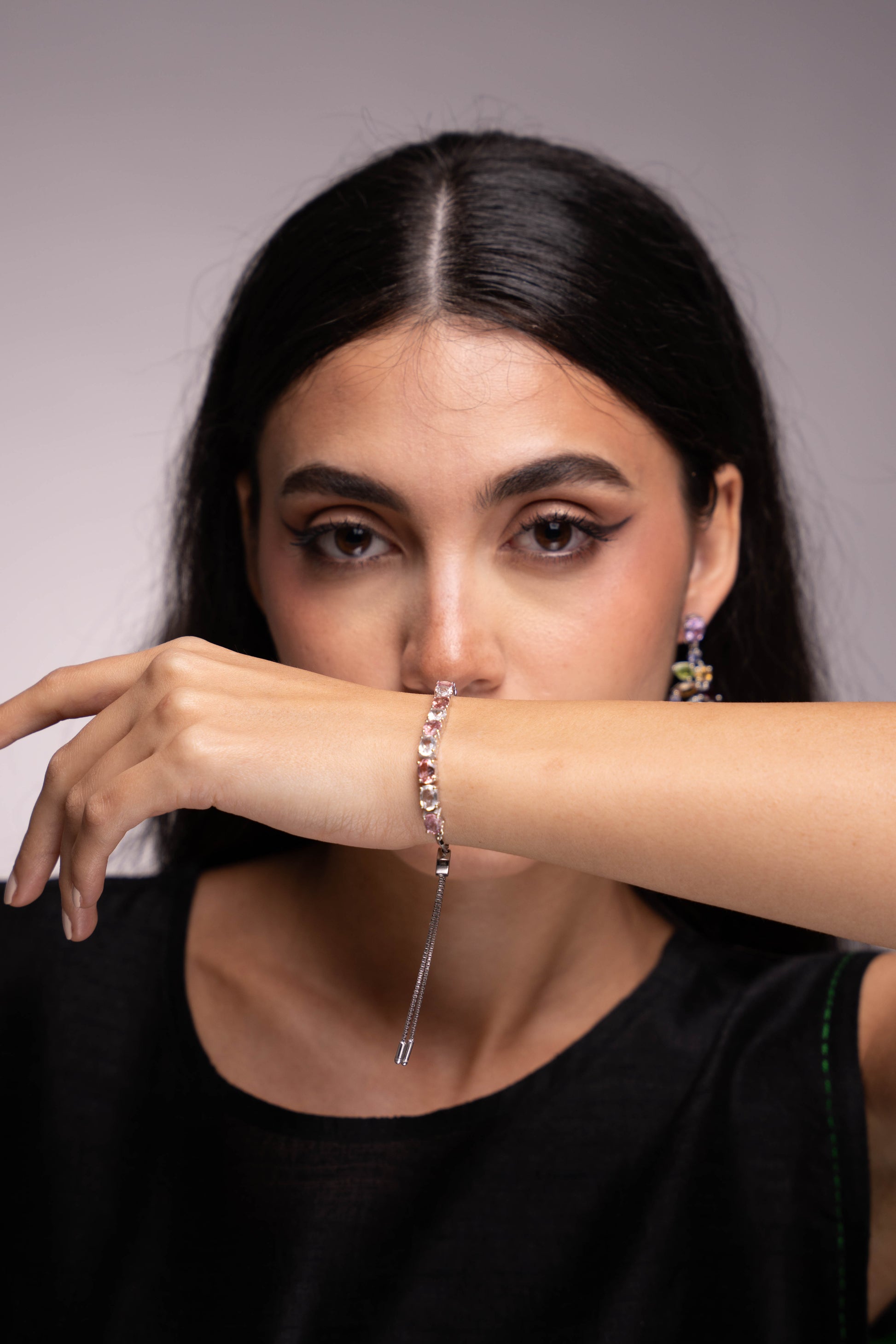 Tourmalines and Crustal strung together in an adjustable sterling silver bracelet.