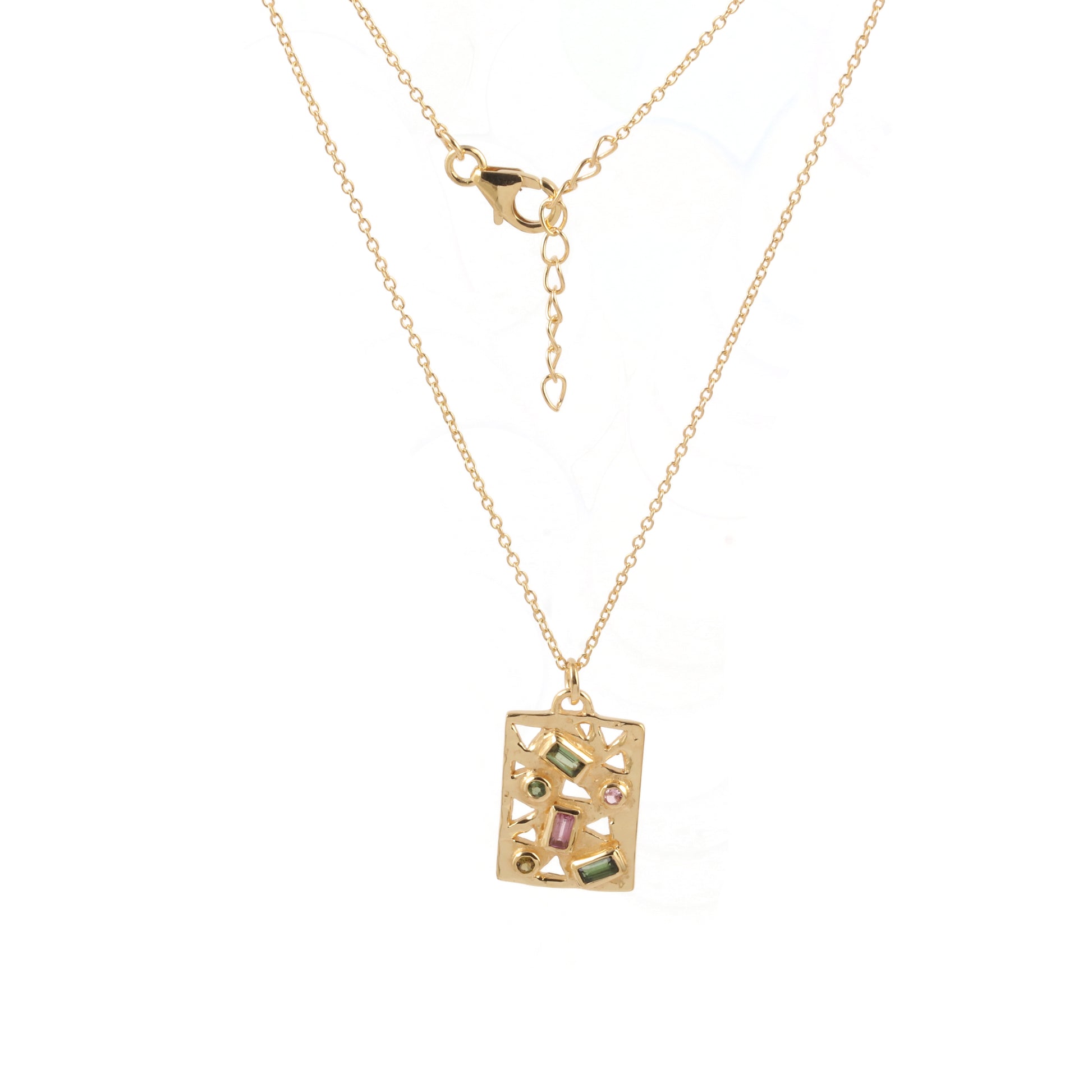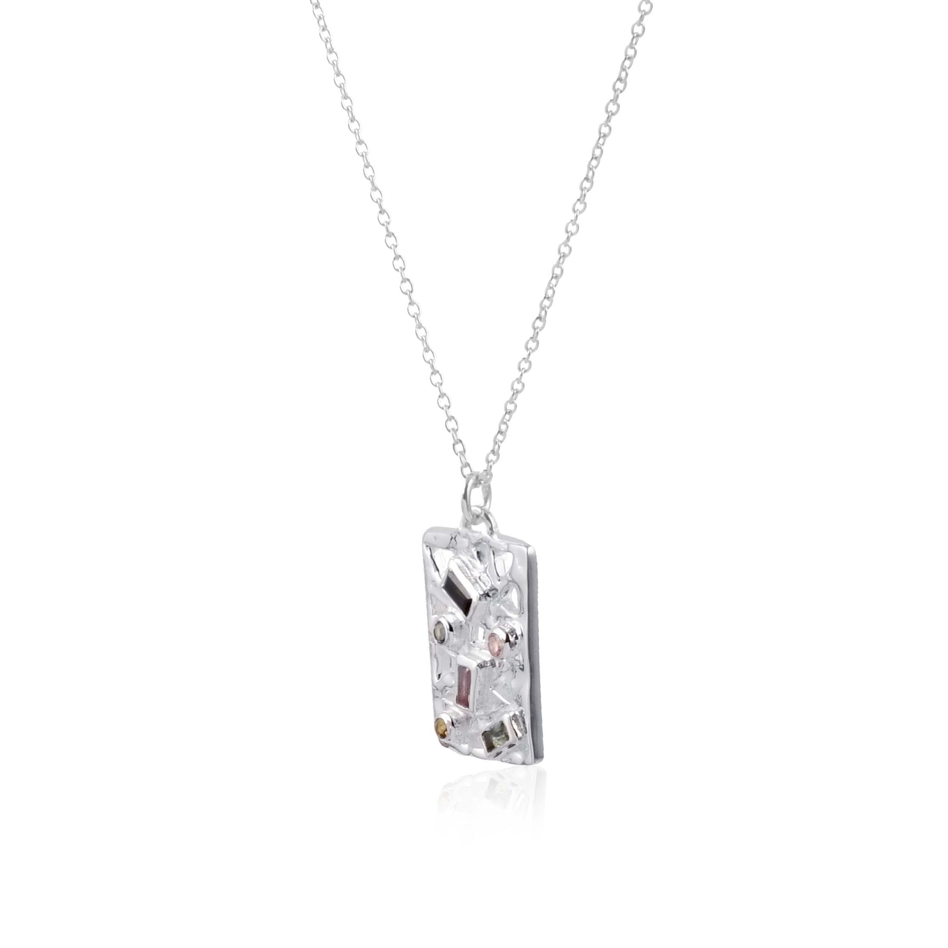 Varied sizes of tourmalines encrusted in a tablet pendant - this silver chain pendant necklace is versatile - wear it solo or for layering.