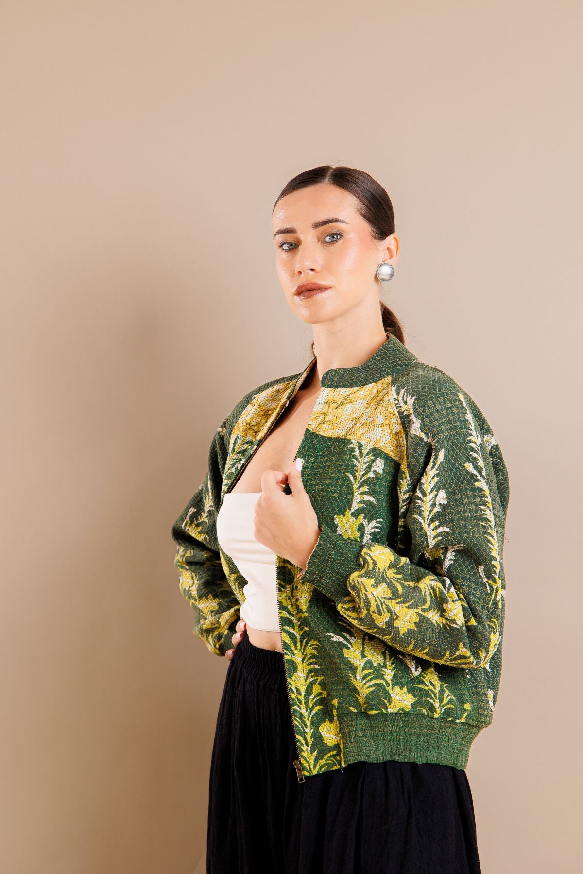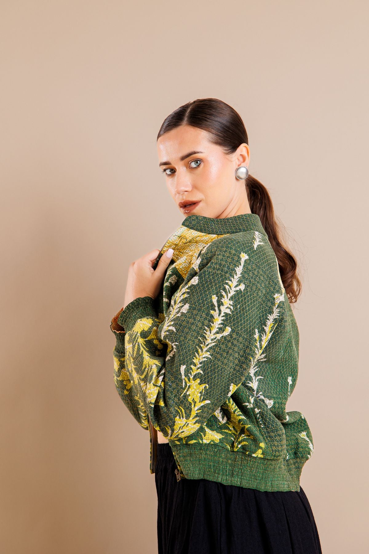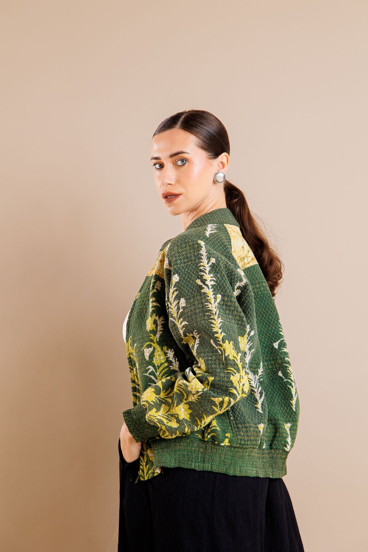 Beautifully made Kantha Bomber jacket by Kinche, These bombers are made of vintage kantha quilts! Each piece is one of a kind in the world, is named and numbered.