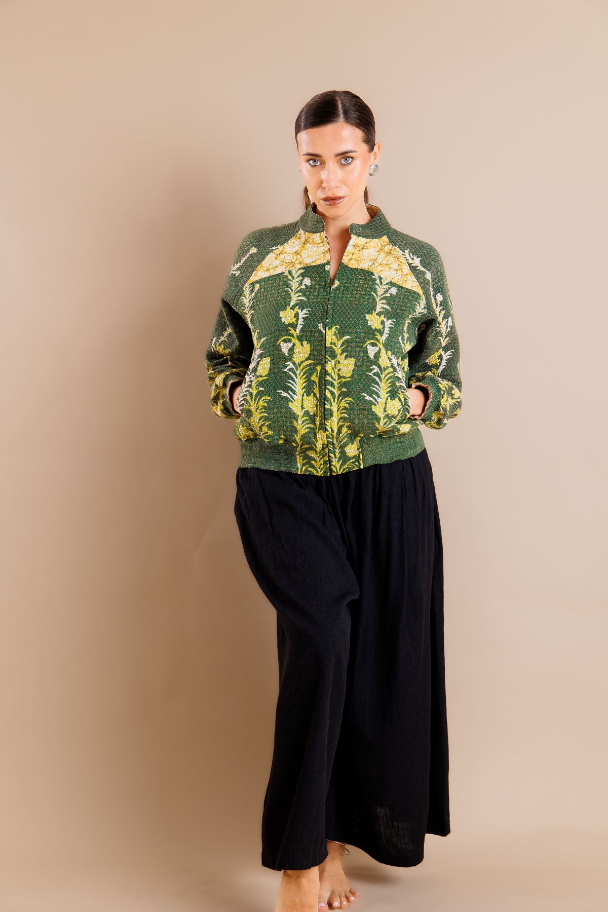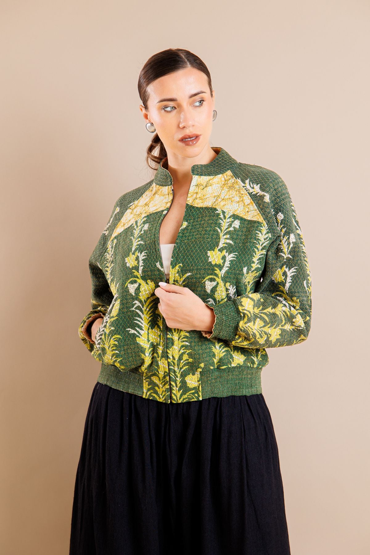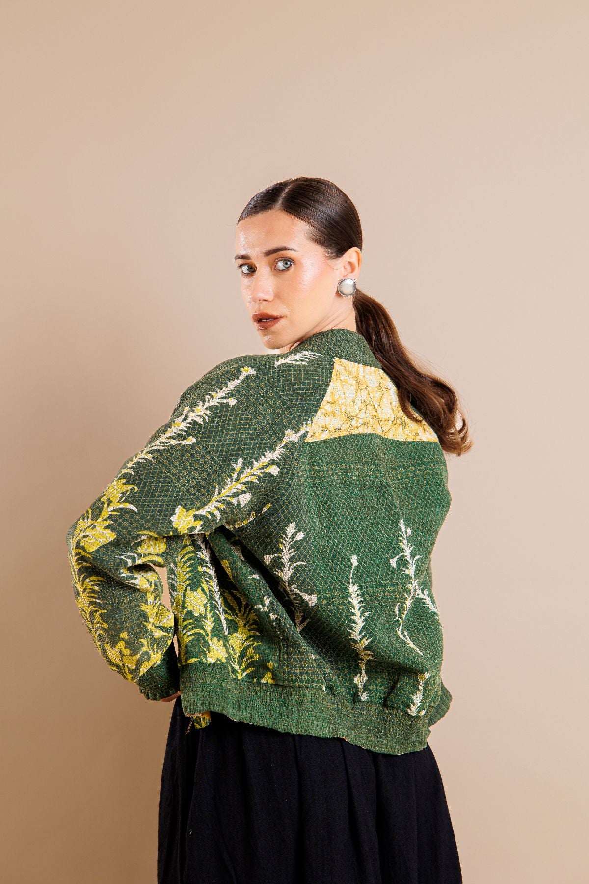 Beautifully made Kantha Bomber jacket by Kinche, These bombers are made of vintage kantha quilts! Each piece is one of a kind in the world, is named and numbered.