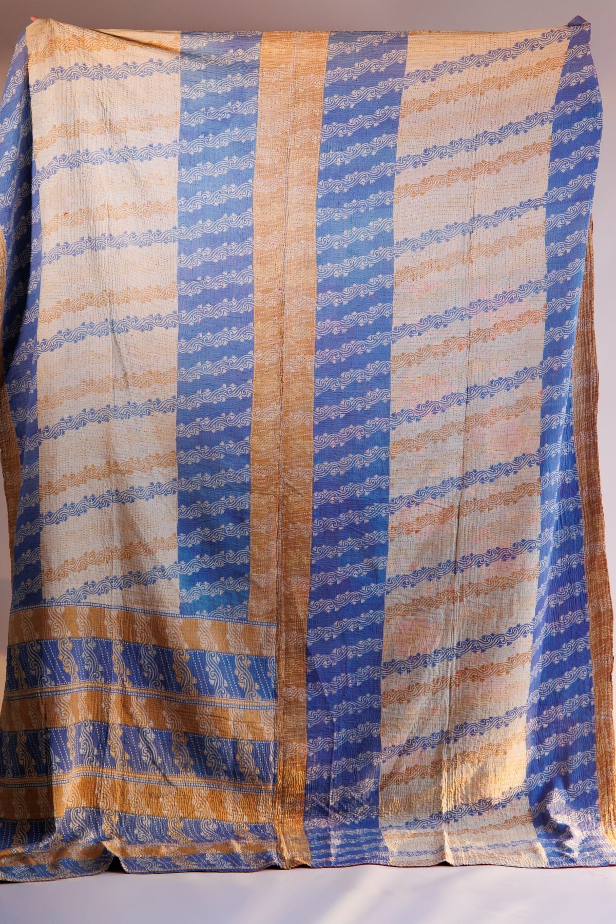 Since the cotton sari fabric is repurposed, these kantha quilts are incredibly soft. Picture a lightweight muslin scarf or swaddle cloth—our blankets consist of multi layers of that same delicate material, meticulously stitched together for added comfort and warmth.