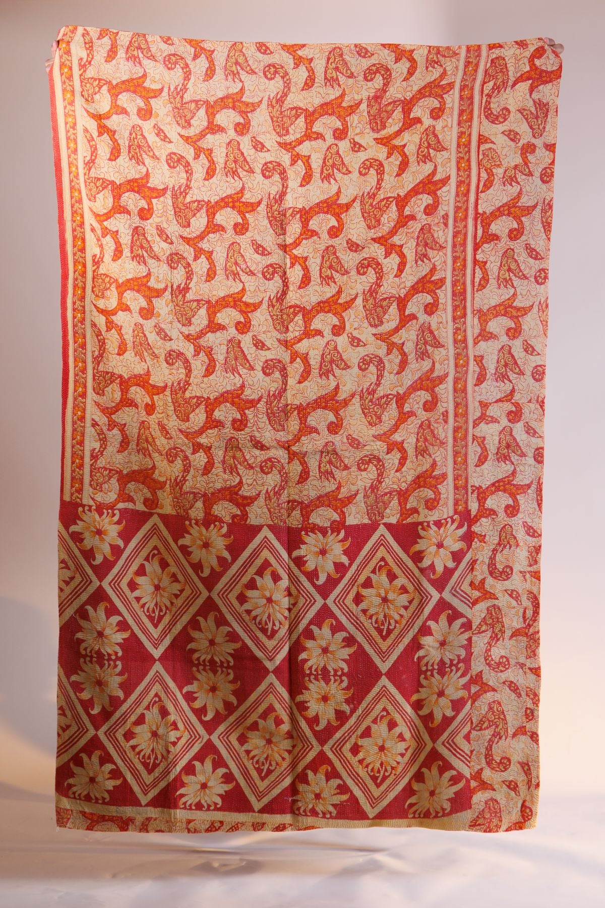 Discover our handmade vintage kantha quilts and throws, crafted in India from upcycled cotton saris. These sustainable and versatile quilts are perfect for adding warmth and a splash of color to your bedroom or living room. Each unique piece features variations in size and stitching, showcasing its individuality. With charming patches and intricate embroidery, our upcycled kantha throws are not only functional but also serve as beautiful decor items for any home.