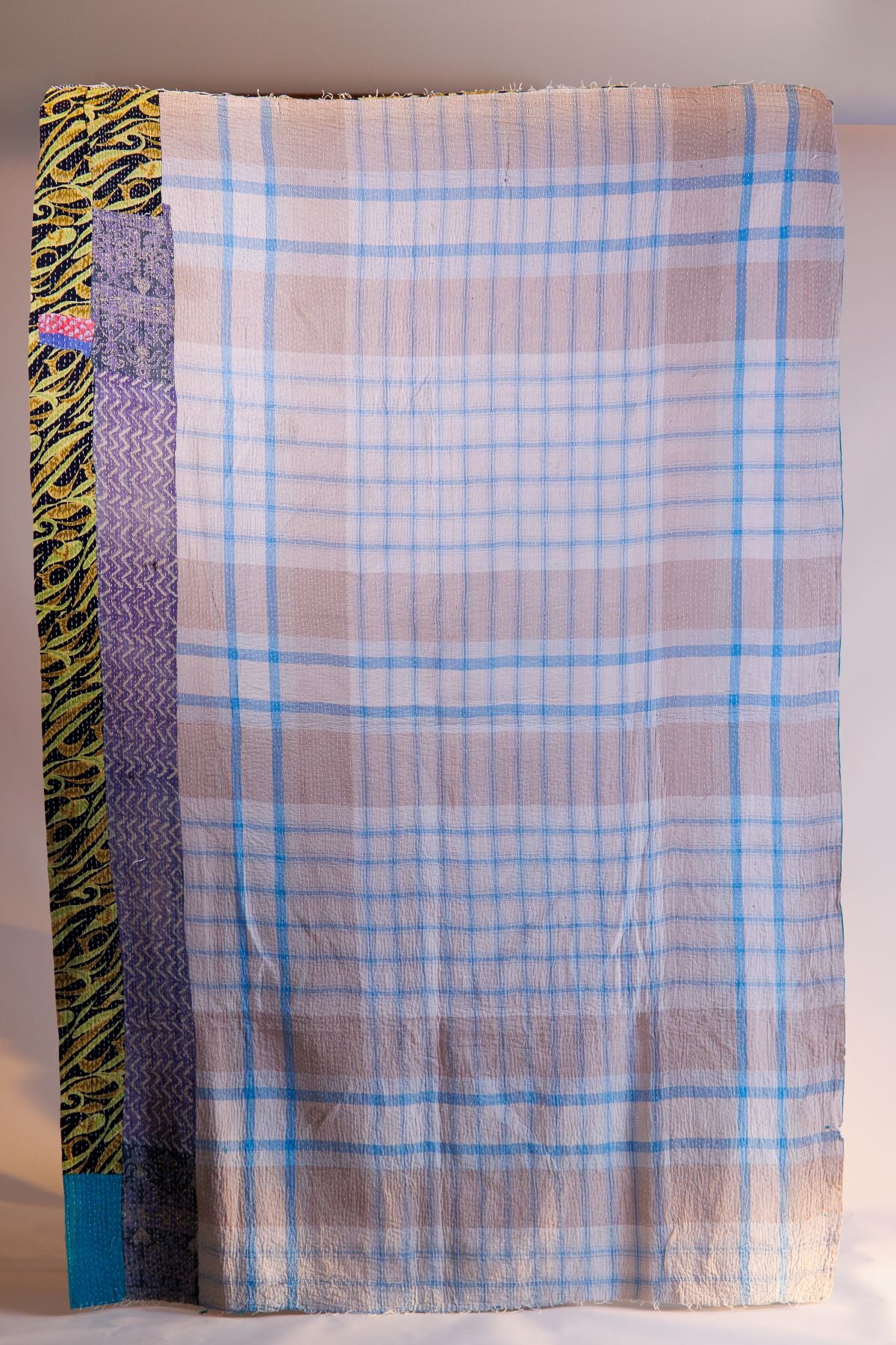 Since the cotton sari fabric is repurposed, these kantha quilts are incredibly soft. Picture a lightweight muslin scarf or swaddle cloth—our blankets consist of multi layers of that same delicate material, meticulously stitched together for added comfort and warmth.